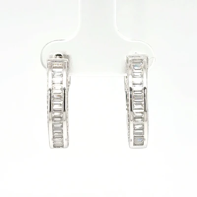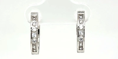 Solid Silver & Cubic Zirconia Hinged Huggies Style Hoop Earrings 3.6g ( 15.3 x 16.2 x 2.9mm )