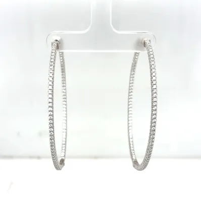 Solid Silver & Cubic Zirconia Hinged Oval Hoop Earrings 6.0g ( 20.5 x 19.5 x 4.5mm )