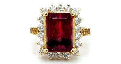 5.50ct Tourmaline & 1.00ct Diamond Halo/Dress Ring- 14ct Gold 7.0g