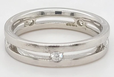 0.16ct Scattered Diamond & 18ct White Gold Wedding Band 4.7g