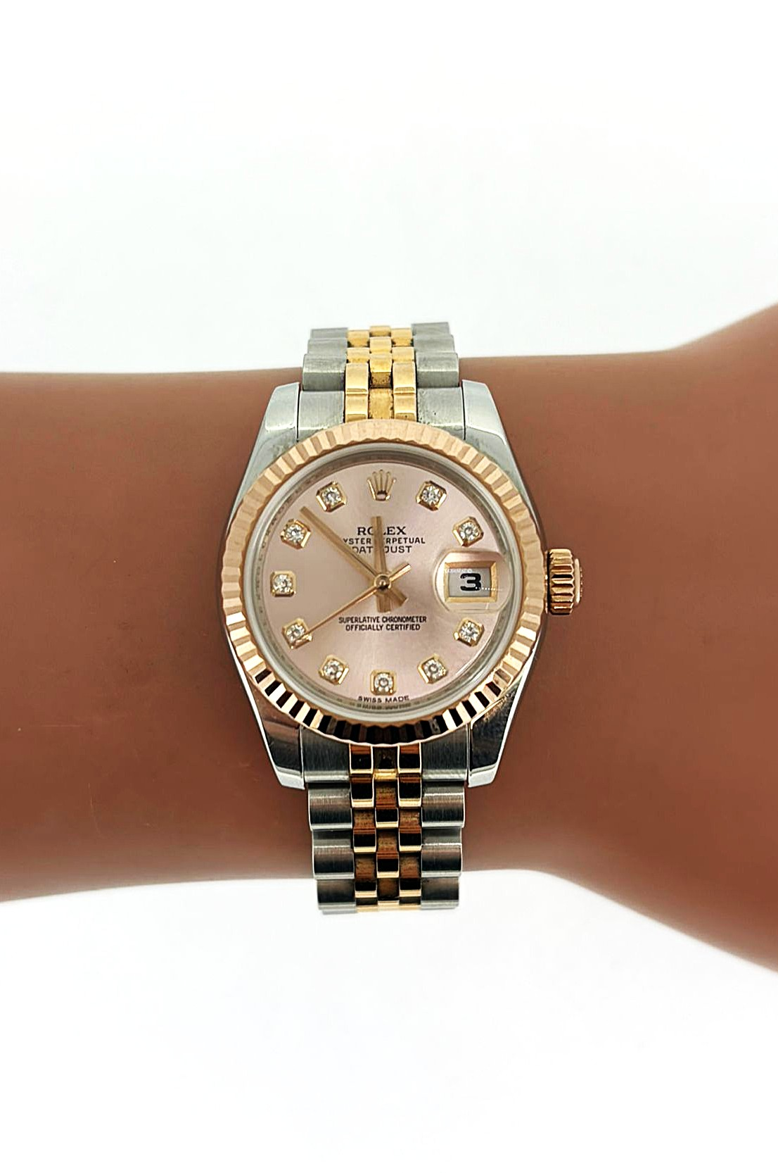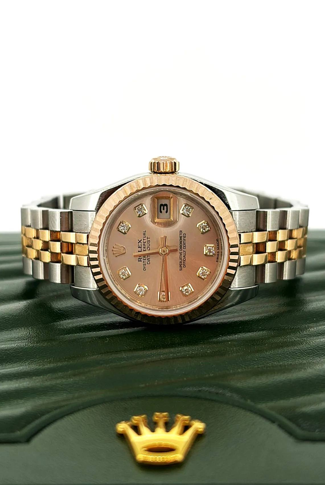 Rolex 26mm DateJust Pink Diamond Dot Dial (2015 Box & Papers) 18ct Rose Gold & Stainless Steel