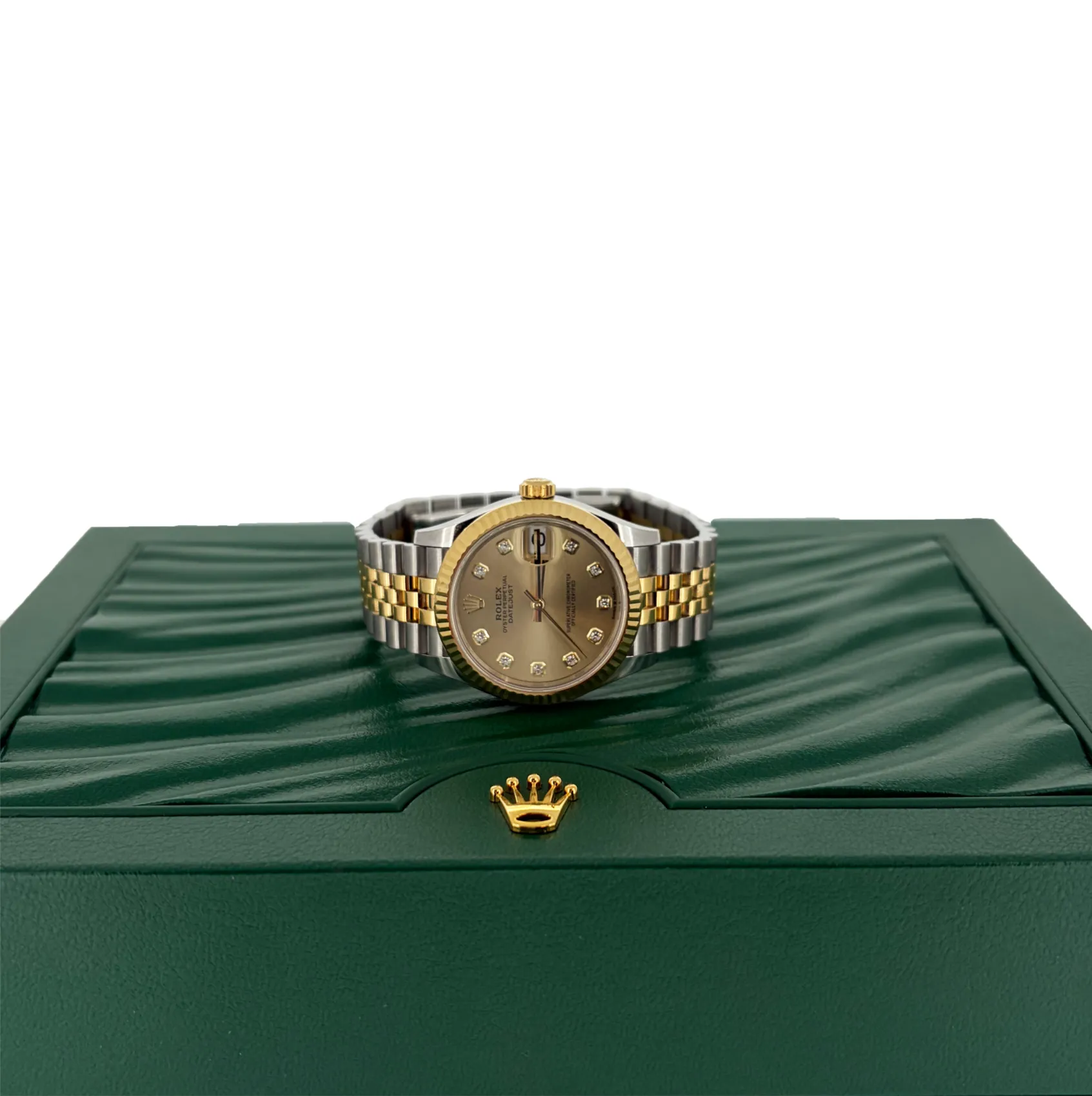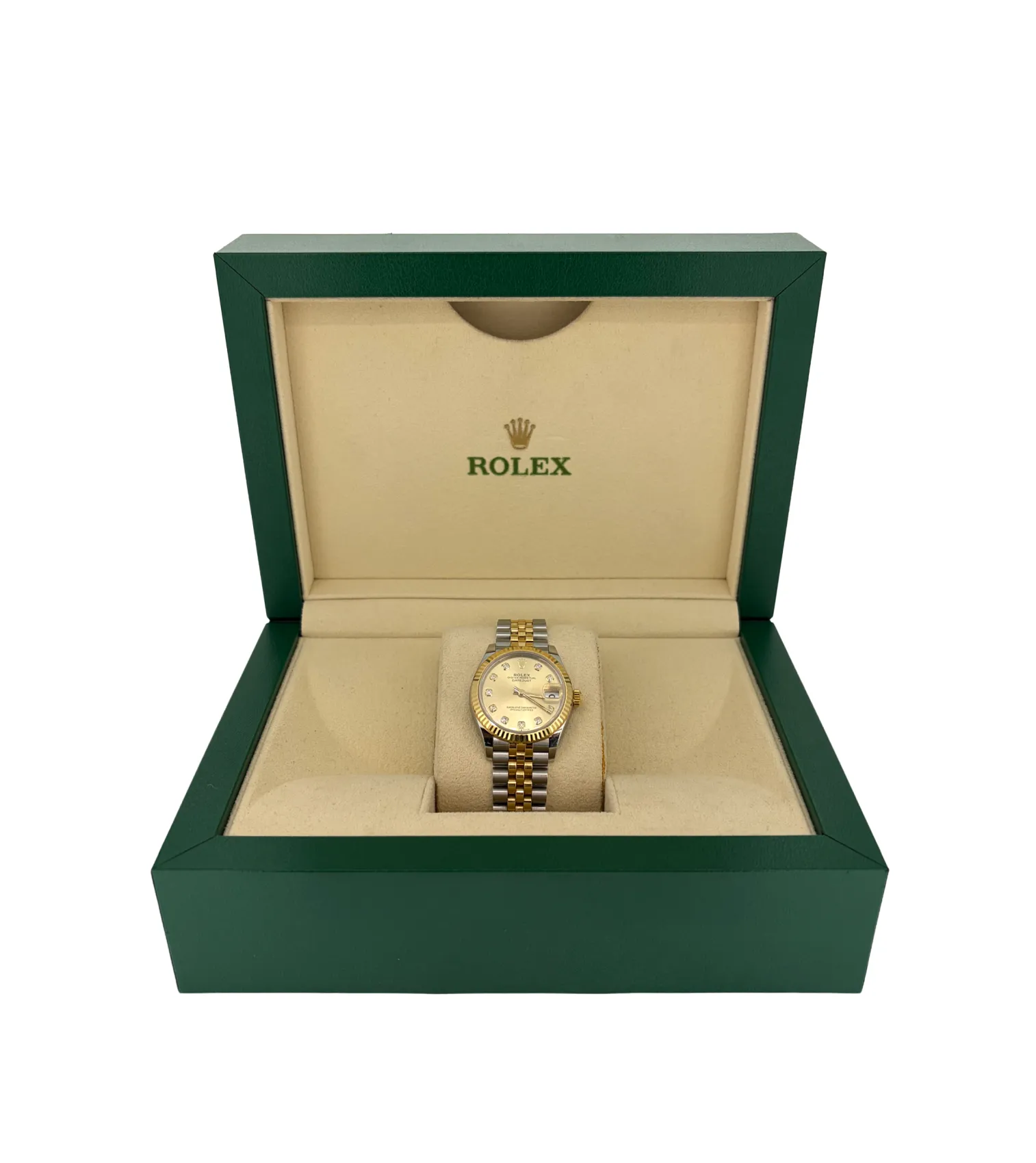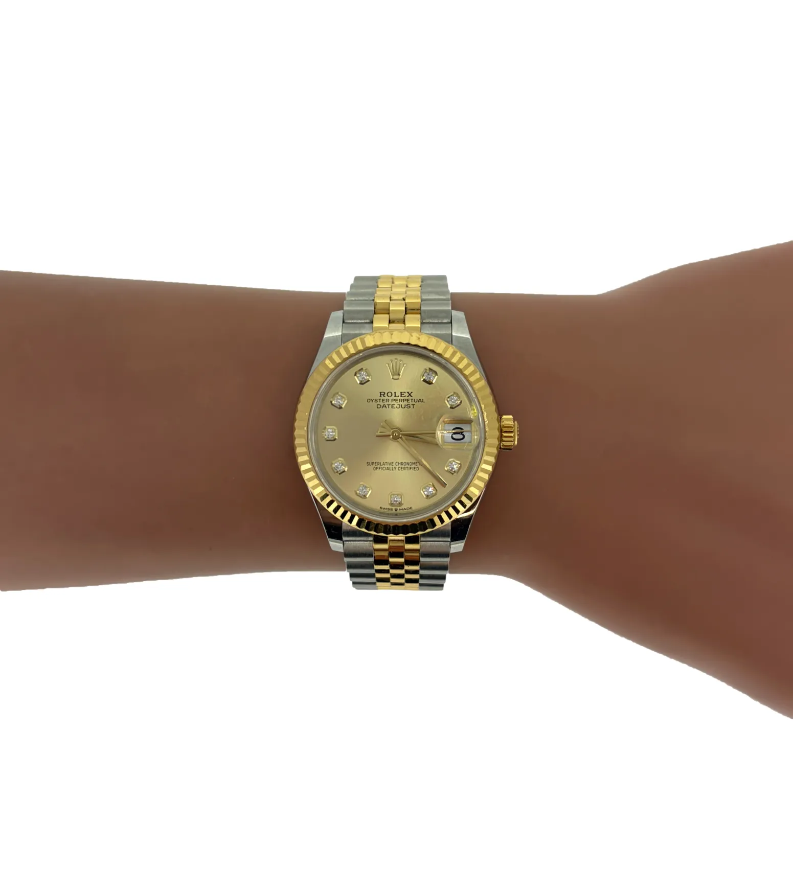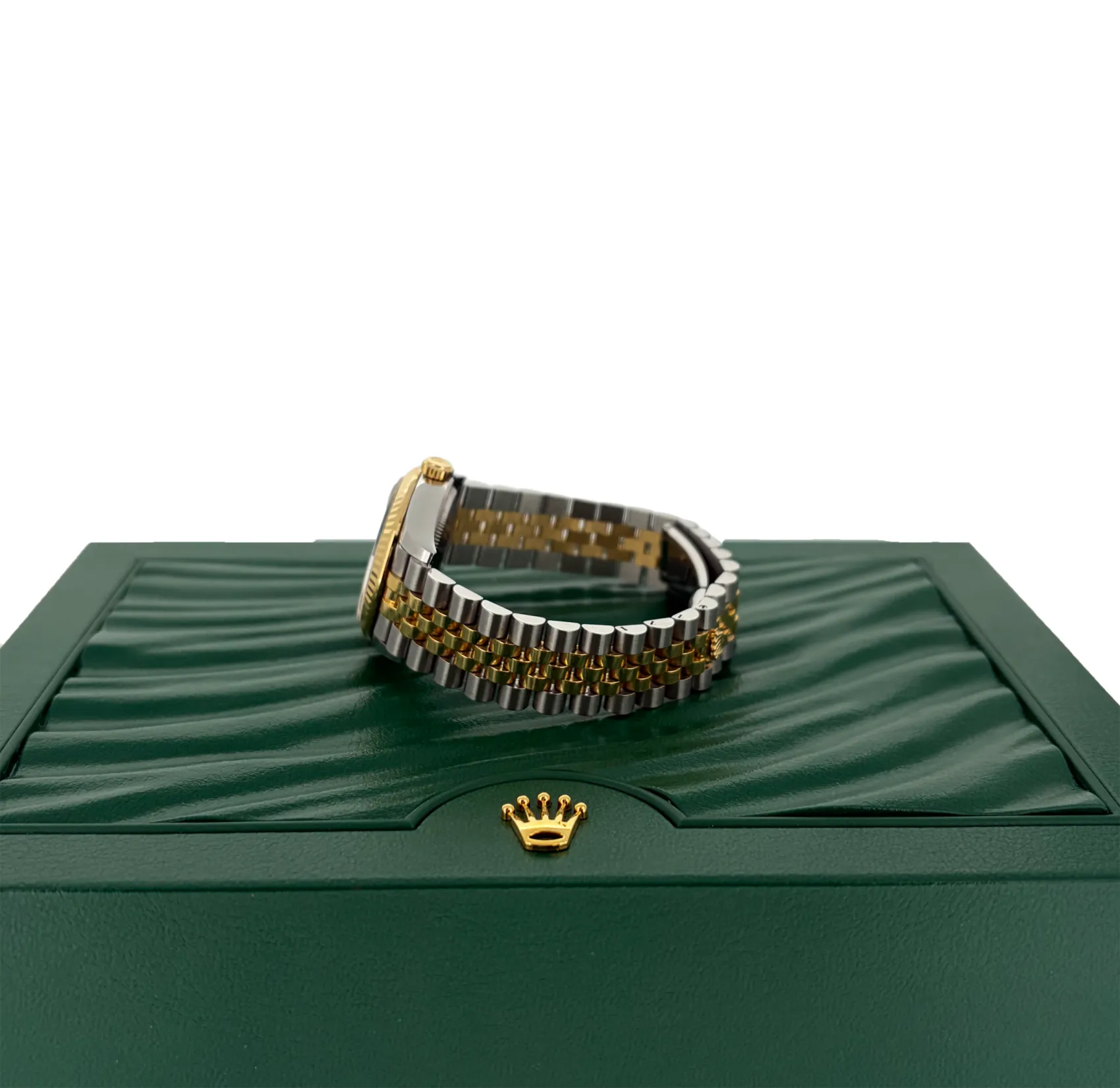 A refined and elegant timepiece, this Rolex Datejust features a 31mm case crafted from a luxurious combination of 18ct Gold and Stainless Steel. The diamond-set dial adds a touch of brilliance, perfectly complementing its classic design. Presented with its original 2021 box and papers, this watch embodies timeless sophistication and precision. The bracelet is fully adjustable, ensuring a comfortable and secure fit for everyday wear.