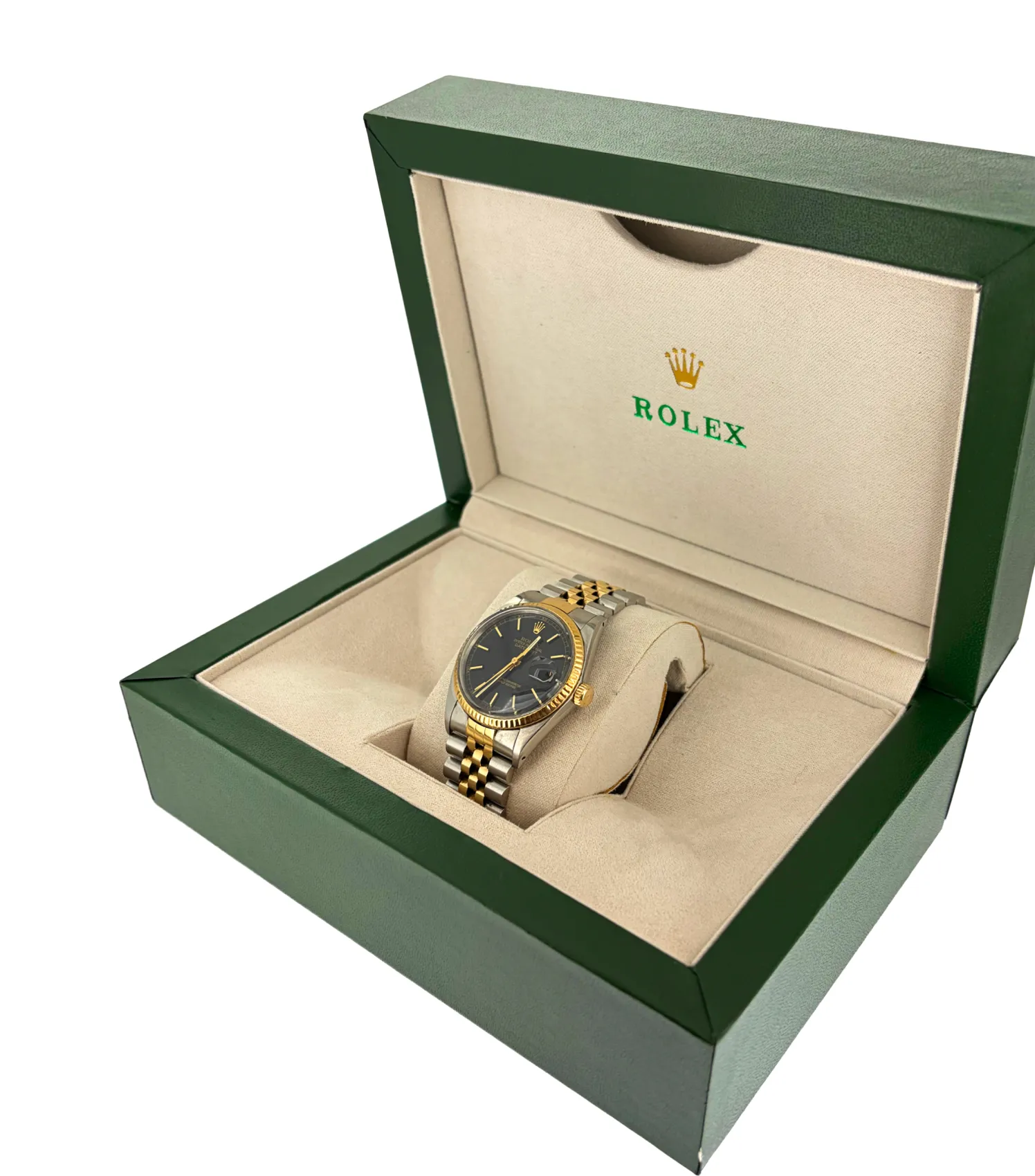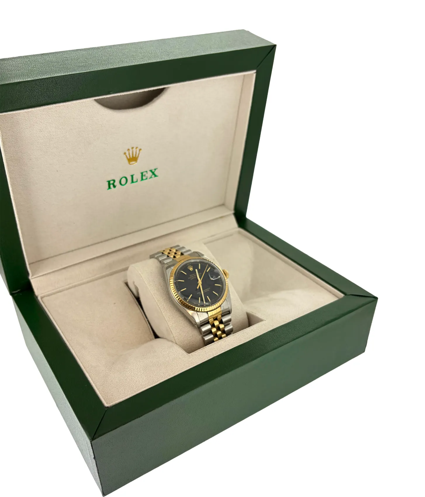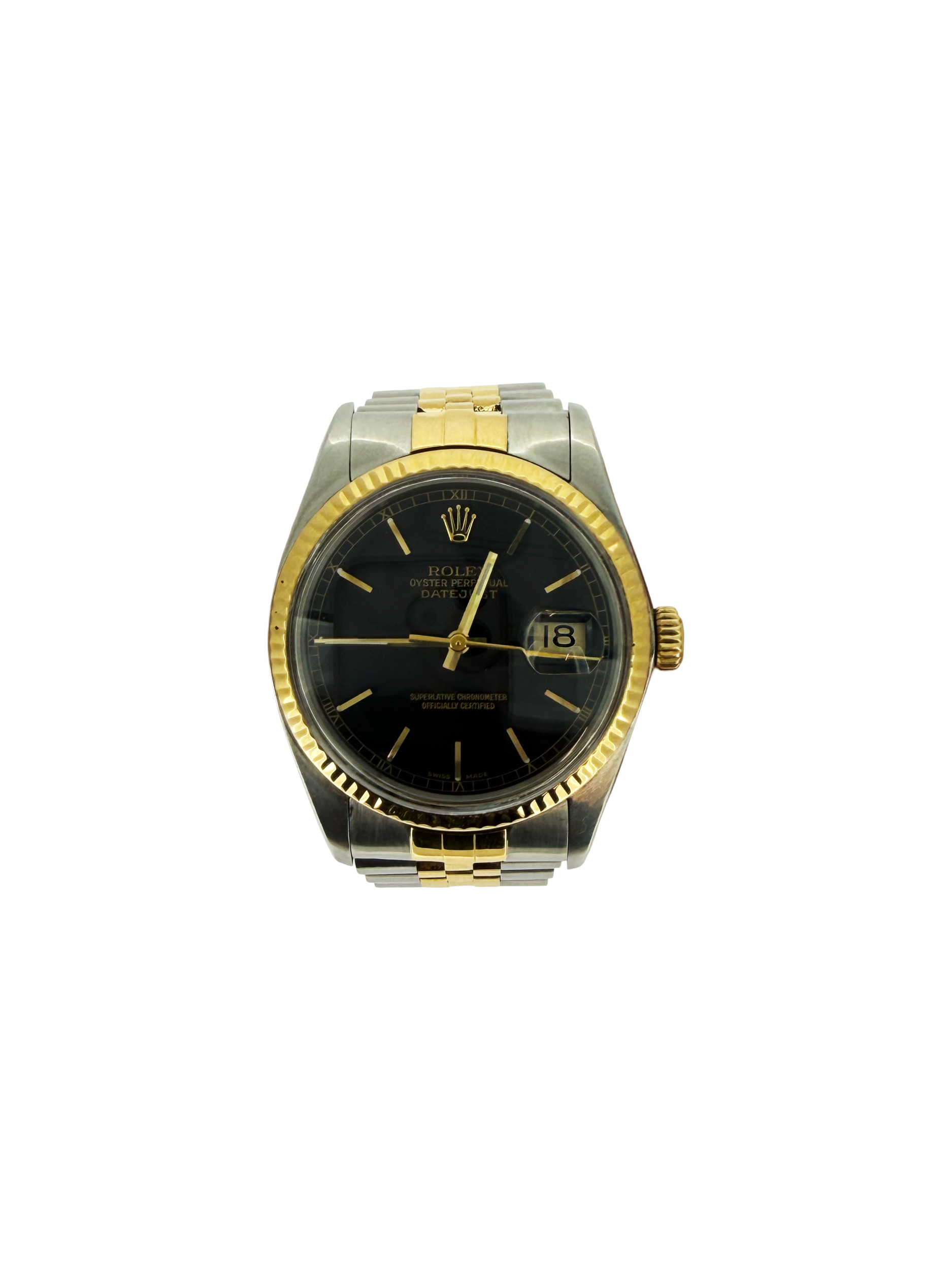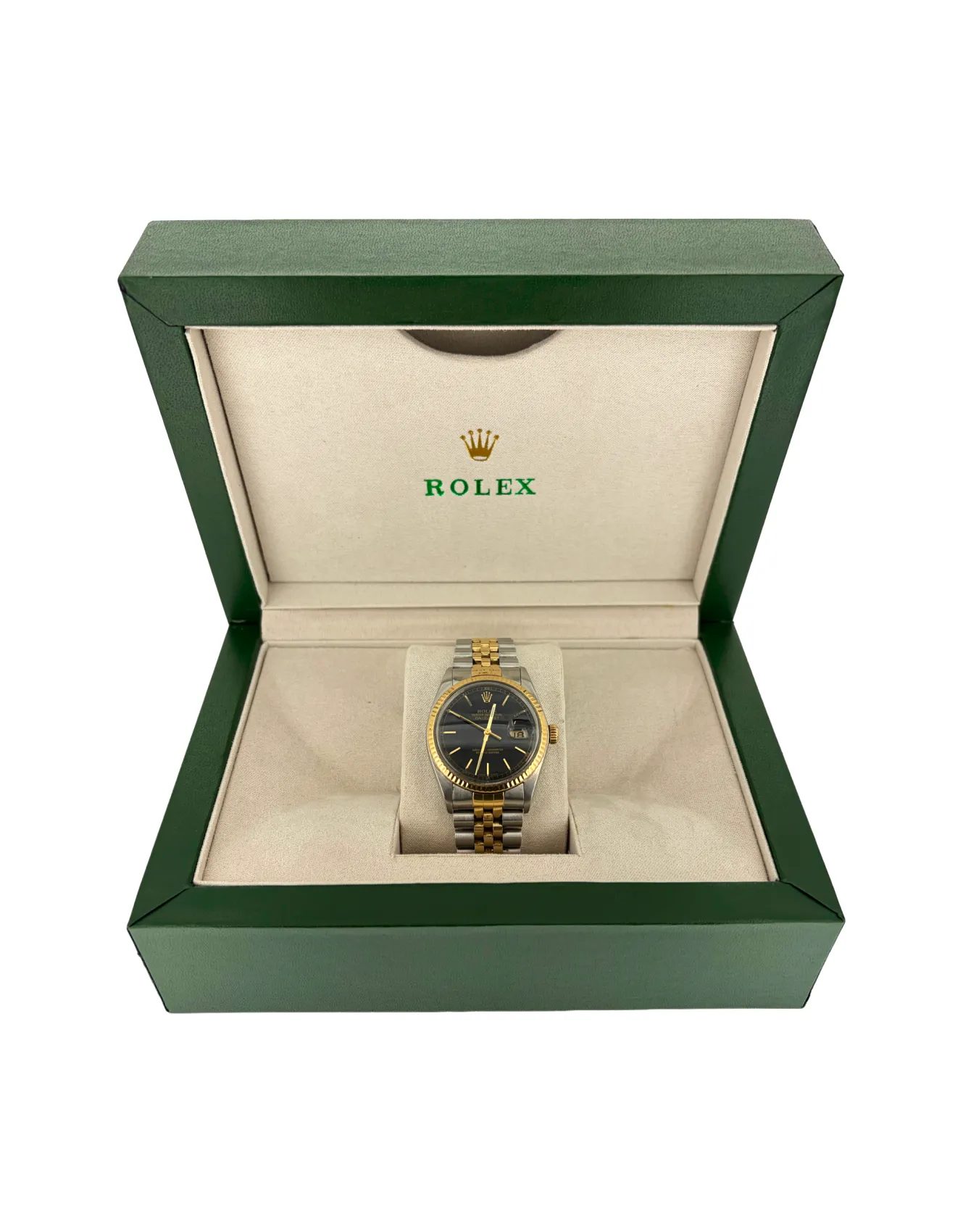 A timeless classic, this Rolex Datejust features a 36mm case crafted from a refined combination of 18ct Gold and Stainless Steel. Dating from 1985, this elegant timepiece showcases the enduring design and precision craftsmanship that define the Datejust collection. Offered as watch only, it remains a highly desirable vintage piece for collectors and enthusiasts. The bracelet is fully adjustable, ensuring a comfortable and secure fit for everyday wear while maintaining its iconic Rolex appeal.