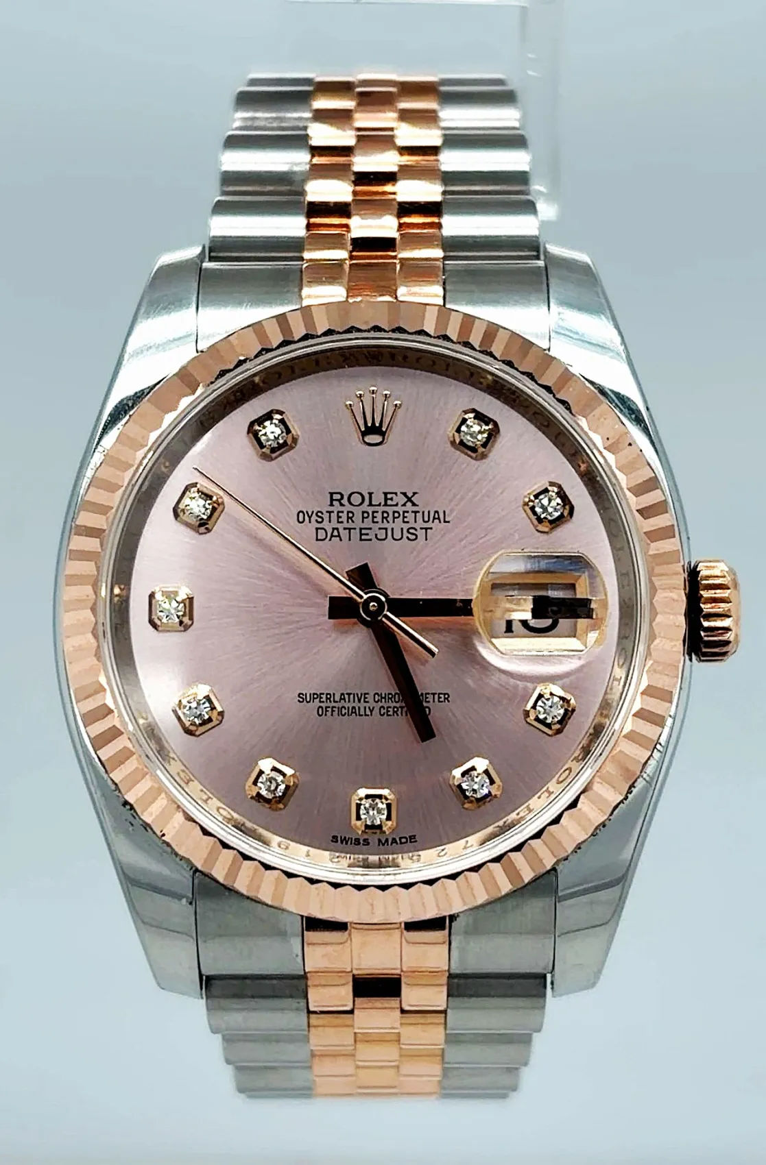 Rolex 36mm DateJust 18ct Rose Gold & Stainless Steel 2013 Box & Papers Model: 116231