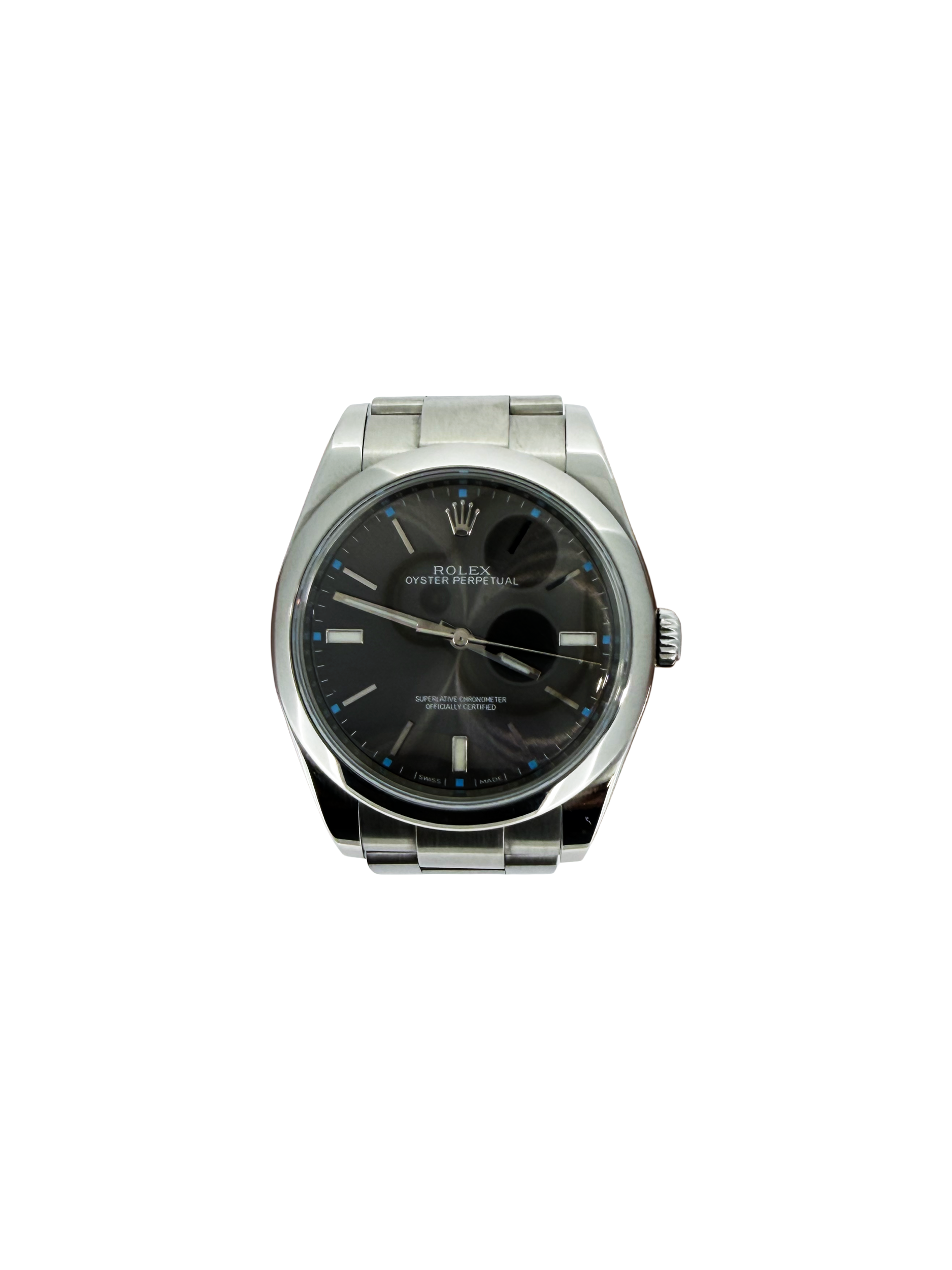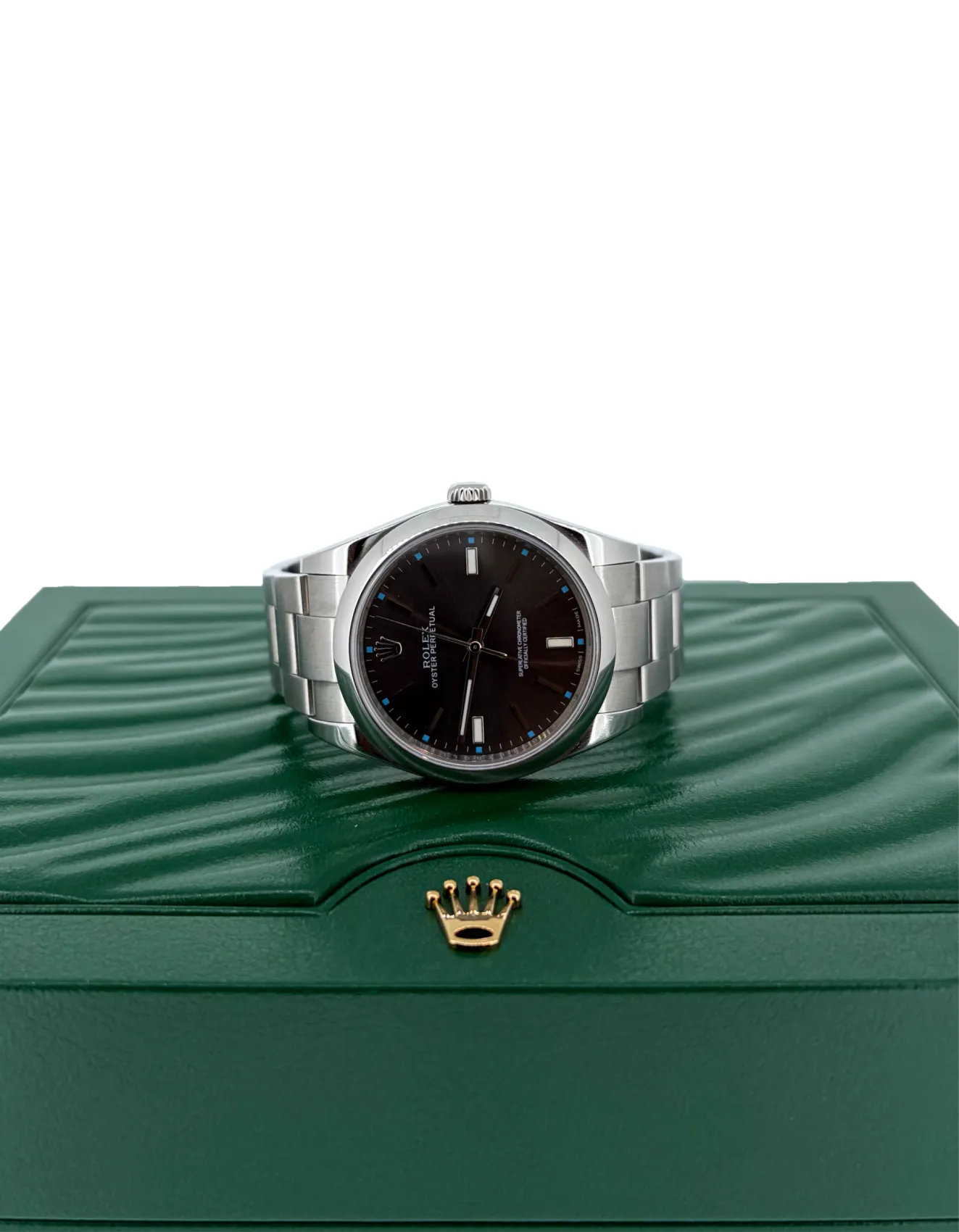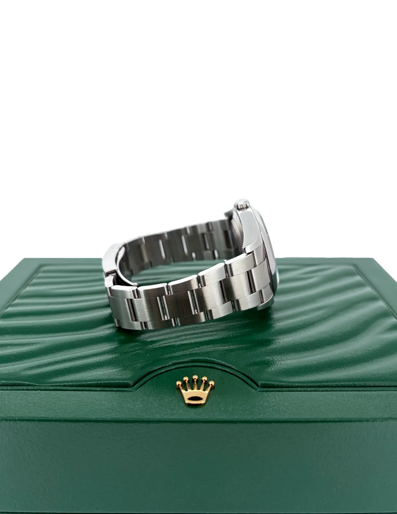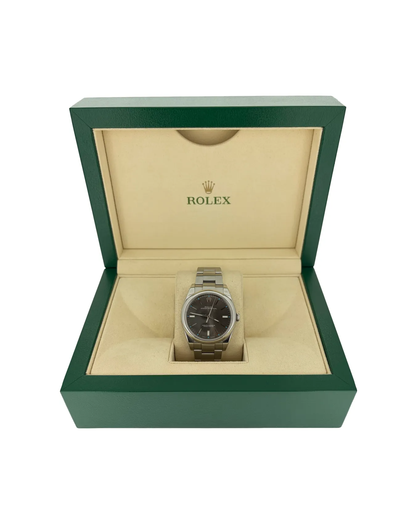 The Rolex Oyster Perpetual 39mm (2016) is crafted in stainless steel, featuring a 39mm case. Supplied with original box and papers.