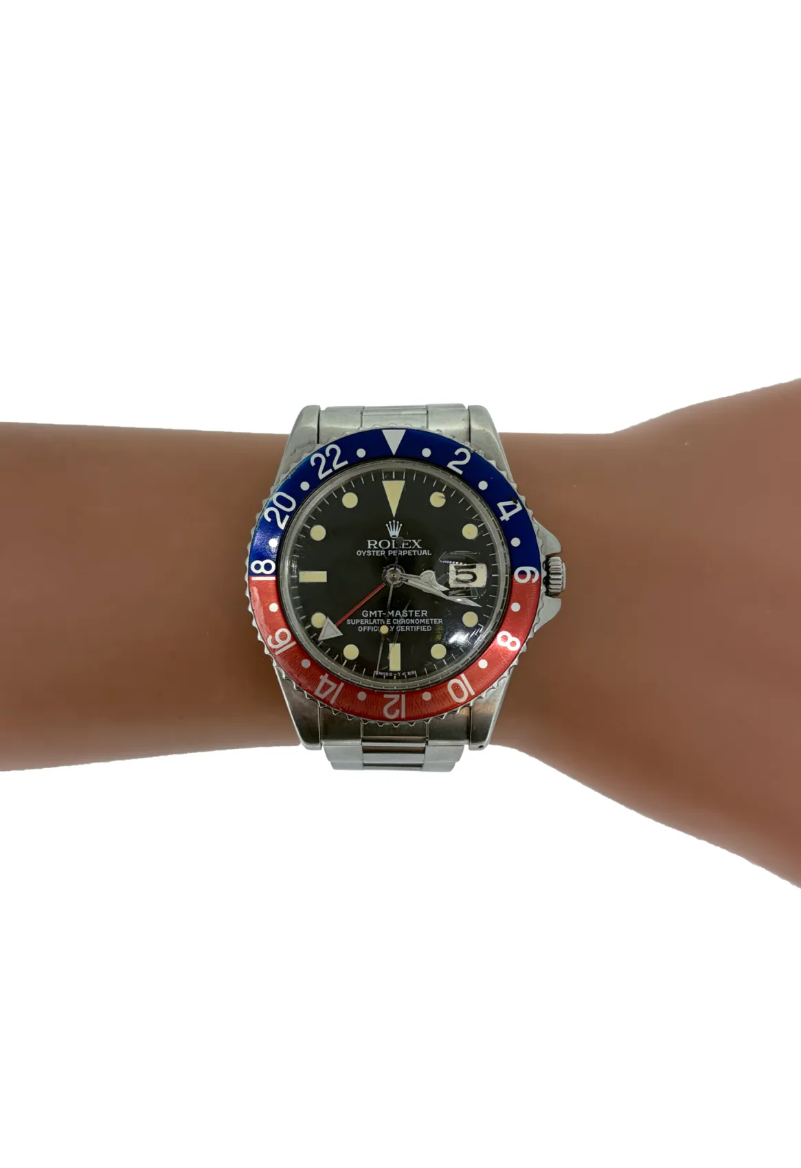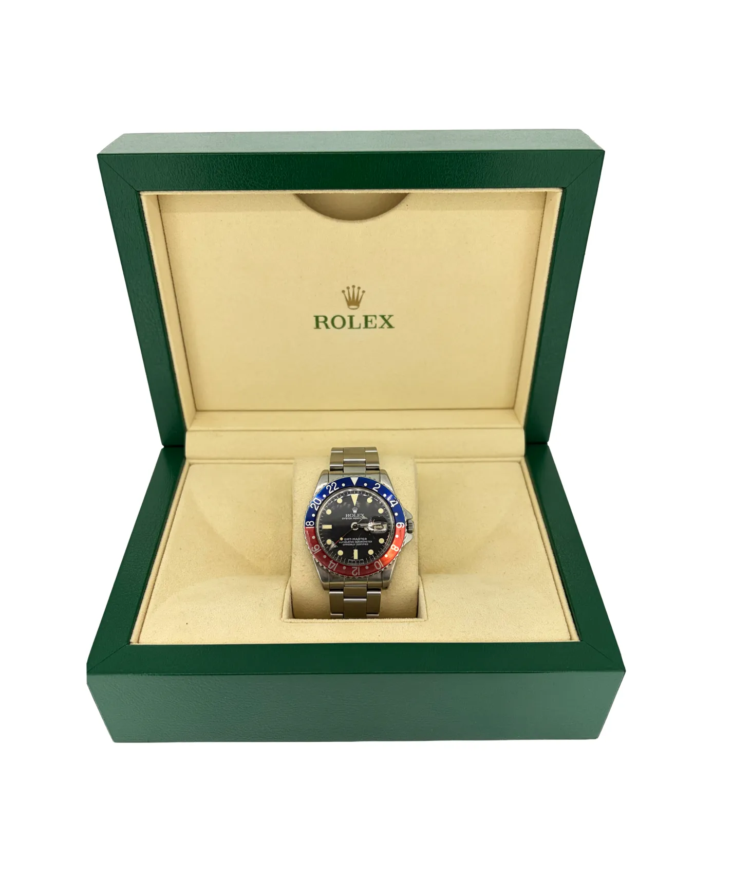 A rare and highly collectible vintage timepiece, this Rolex GMT-Master “Pepsi” features a stainless steel case and the iconic red and blue bezel that has become a hallmark of aviation history. Dating from 1964, Model 3675 represents an early and significant chapter in Rolex’s GMT lineage. Renowned for its dual-time functionality and timeless design, this piece is a true collector’s watch. The bracelet is fully adjustable, ensuring a secure and comfortable fit while preserving its authentic vintage character.
