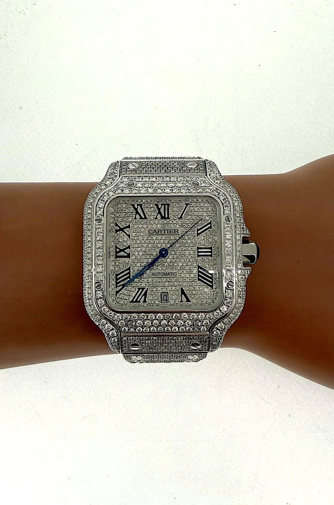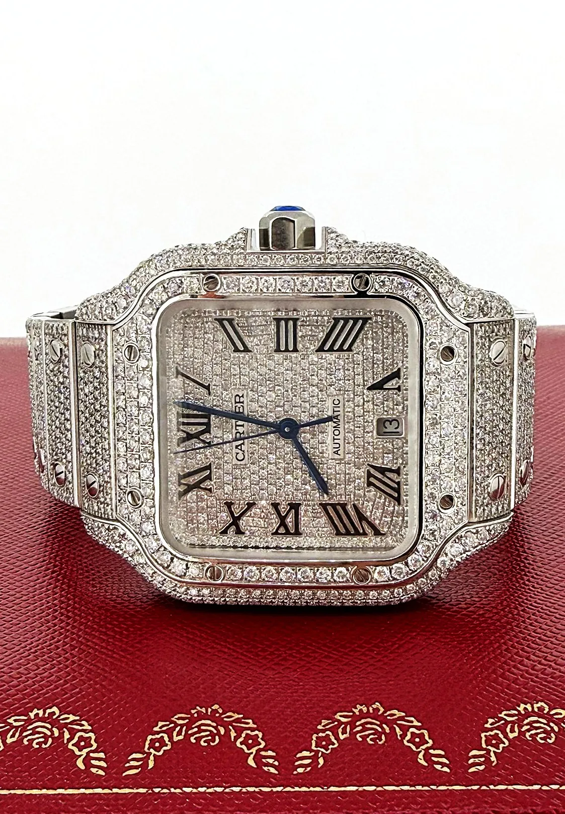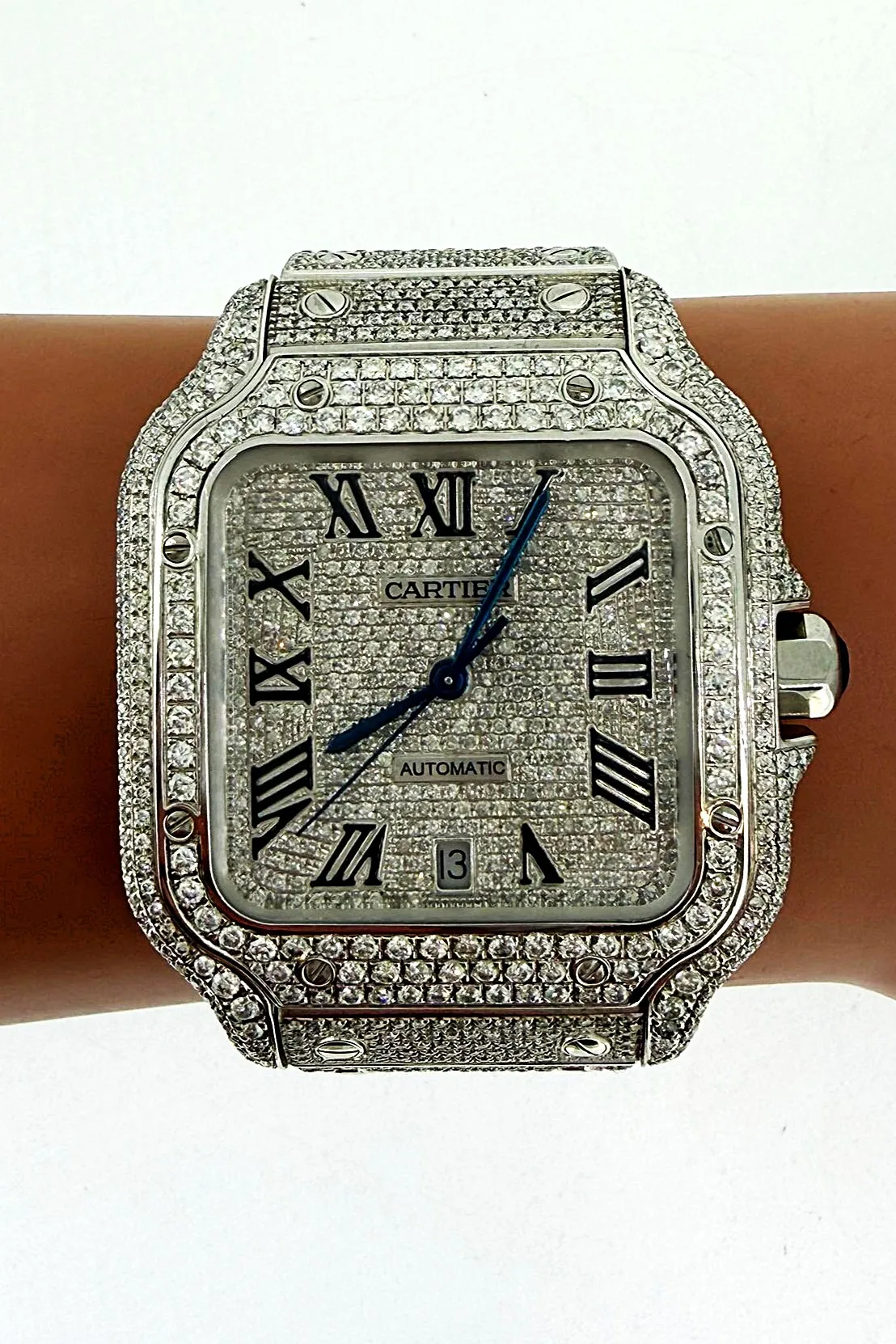 Santos De Cartier 38mm Stainless Steel -FULL DIAMOND - 2025 Box & Papers Model: WSSA-0018