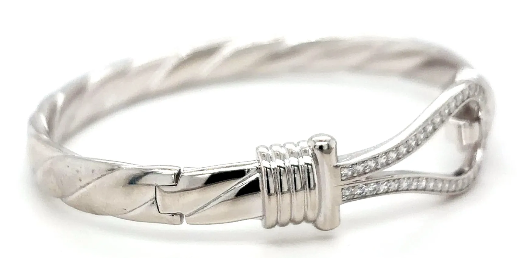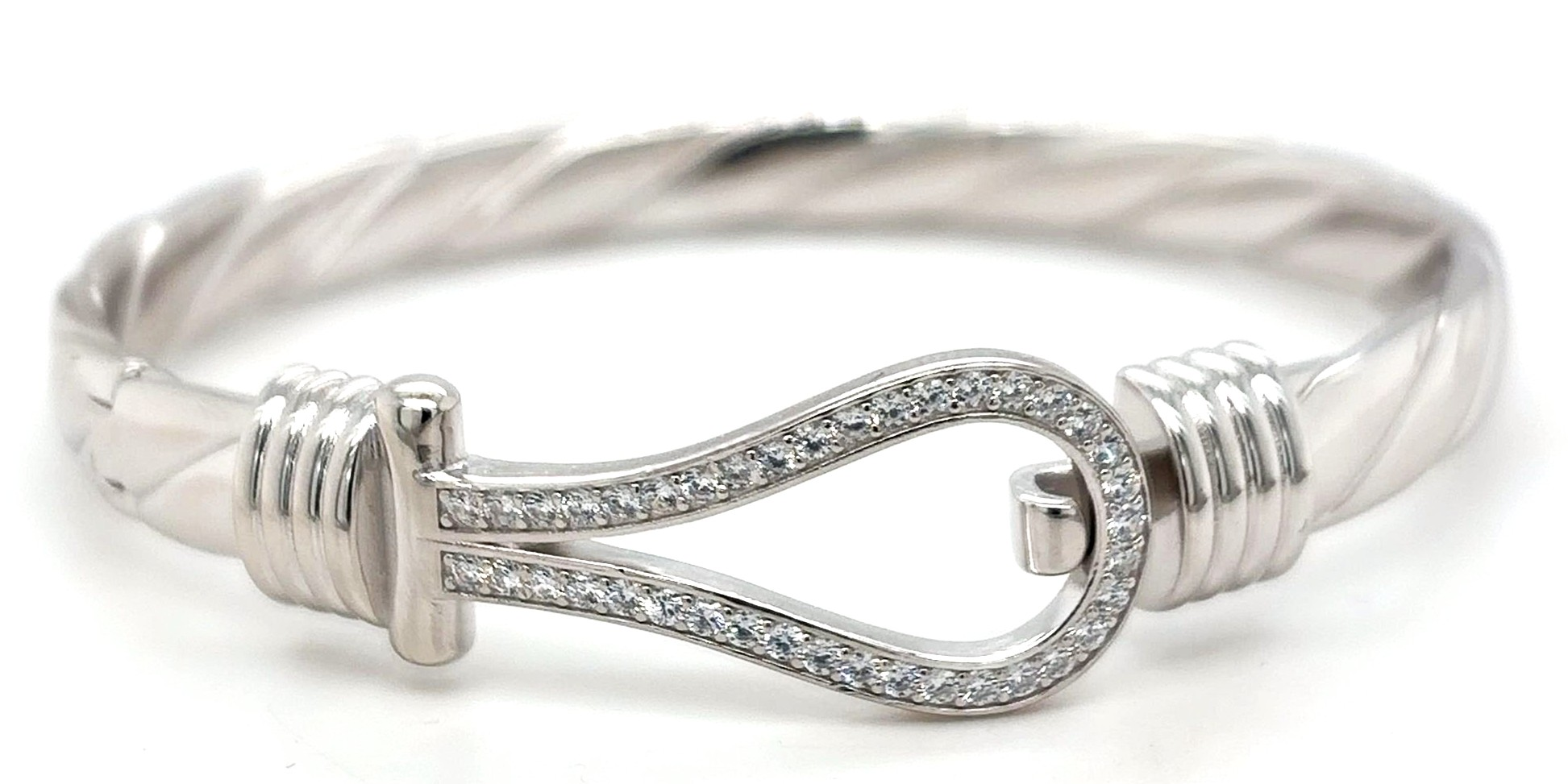 Silver & Cubic Zirconia Fancy Swirl Bangle 34.54g 7 Inch
