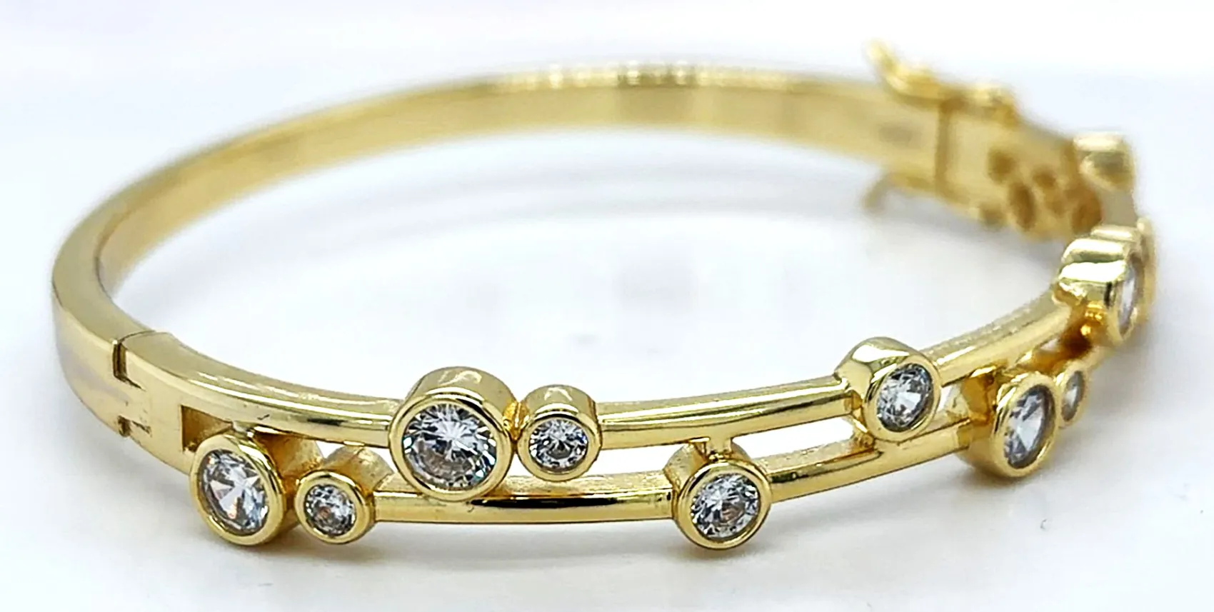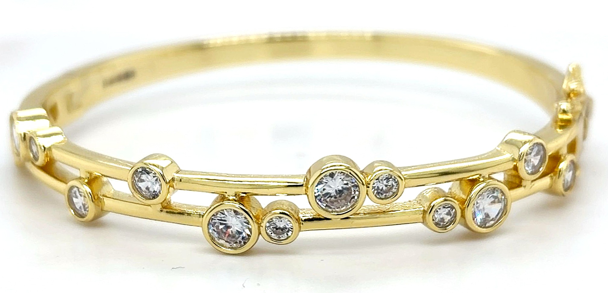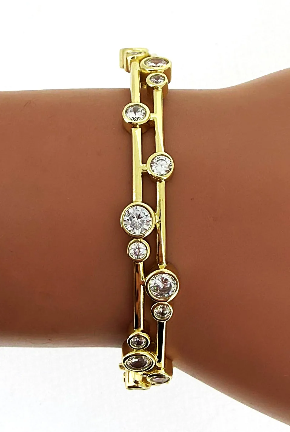 Solid Silver & 18ct Gold plated2 Row Cubic Zirconia Bangle 21.4g 7 Inch