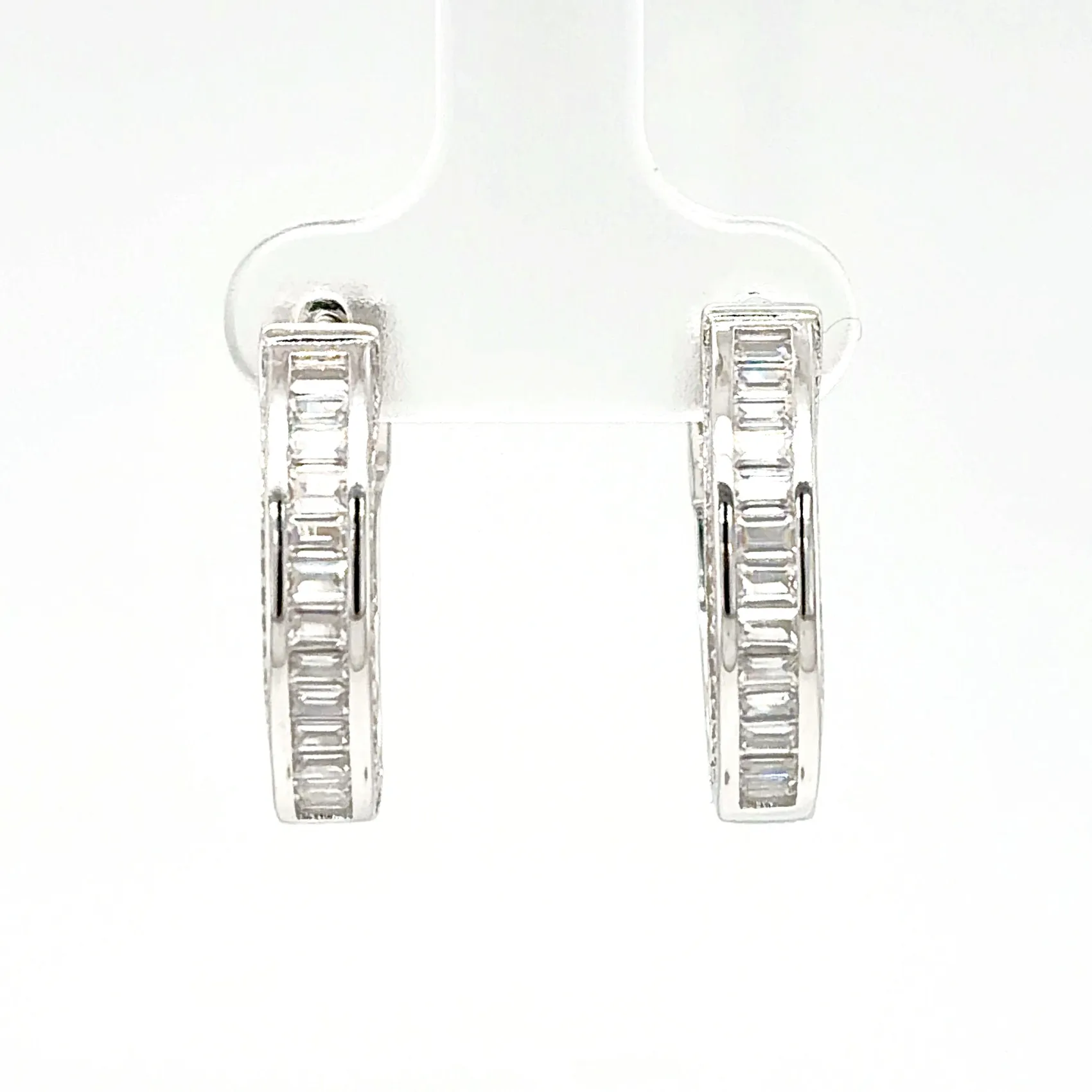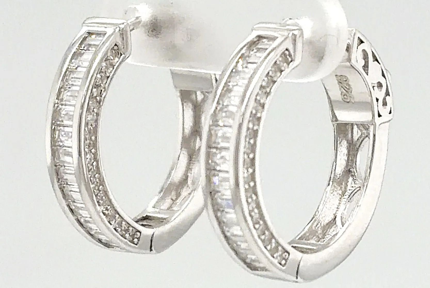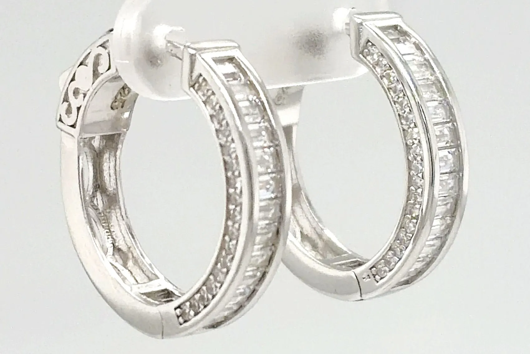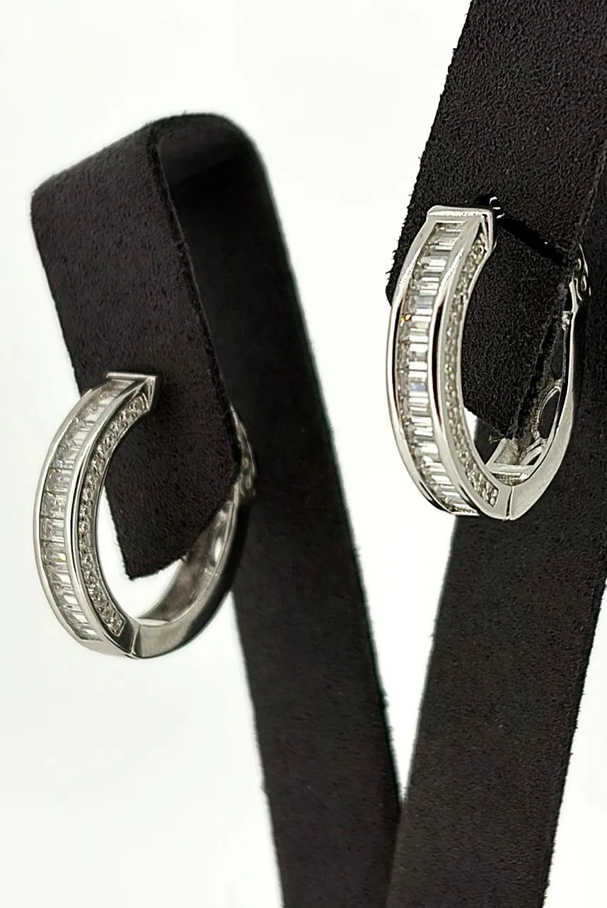 Elegant and eye-catching, these solid silver oval hoop earrings are beautifully set with sparkling cubic zirconia stones, offering refined brilliance and contemporary style. The oval shape adds a flattering elongating effect, while the hinged fastening ensures a secure and comfortable fit. Crafted from solid silver, the earrings weigh 6.0 grams and measure 20.5mm x 19.5mm x 4.5mm, providing a noticeable yet sophisticated presence. The cubic zirconia detailing enhances the polished silver finish, making them perfect for both everyday wear and special occasions. A timeless addition to any jewellery collection, these silver oval hoops are ideal as a thoughtful gift or a versatile statement piece.