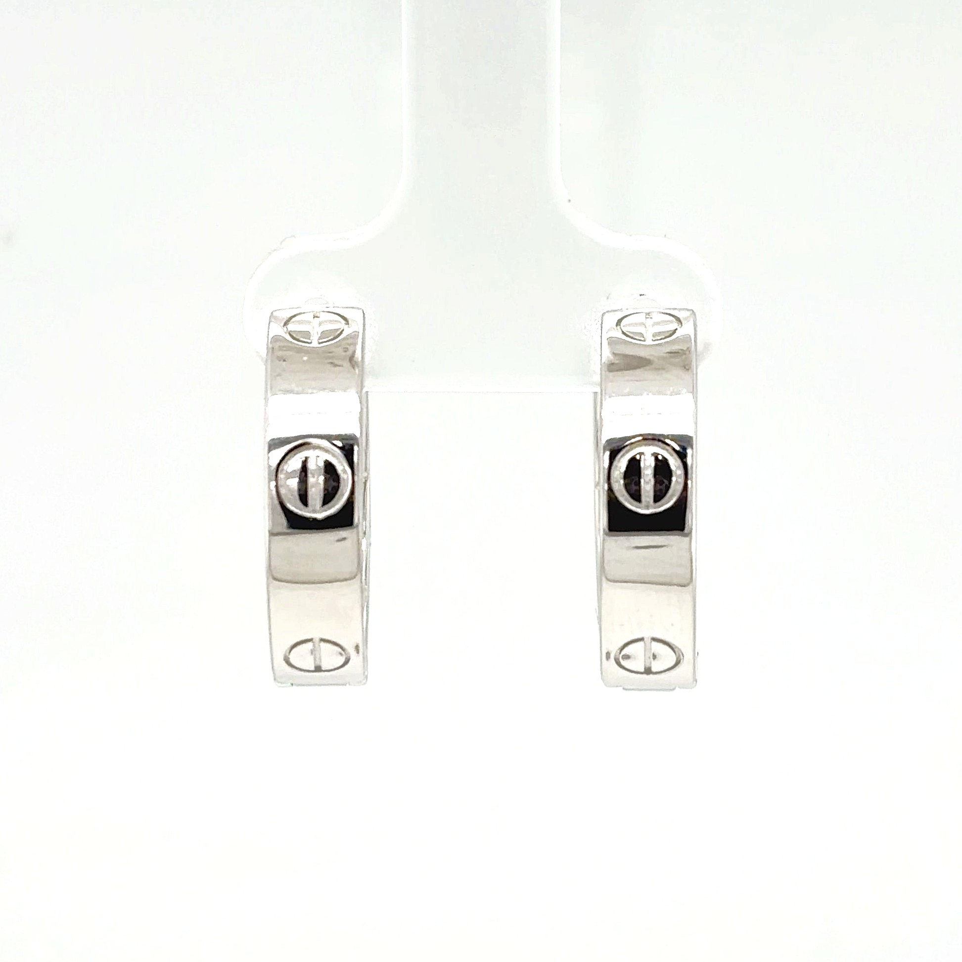 Bold and distinctive, these solid silver screw style hoop earrings feature a detailed twisted screw-inspired design, offering a strong contemporary look with classic hoop appeal. The hinged fastening provides secure closure and comfortable everyday wear. Crafted from solid silver, the earrings weigh 8.2 grams and measure 20mm x 20mm x 5.0mm, giving them a substantial feel and confident presence. The polished finish enhances the sculpted screw pattern, making them ideal for both casual styling and statement wear. A versatile and durable addition to any jewellery collection, these silver hoop earrings are perfect for those who appreciate modern design with timeless strength.