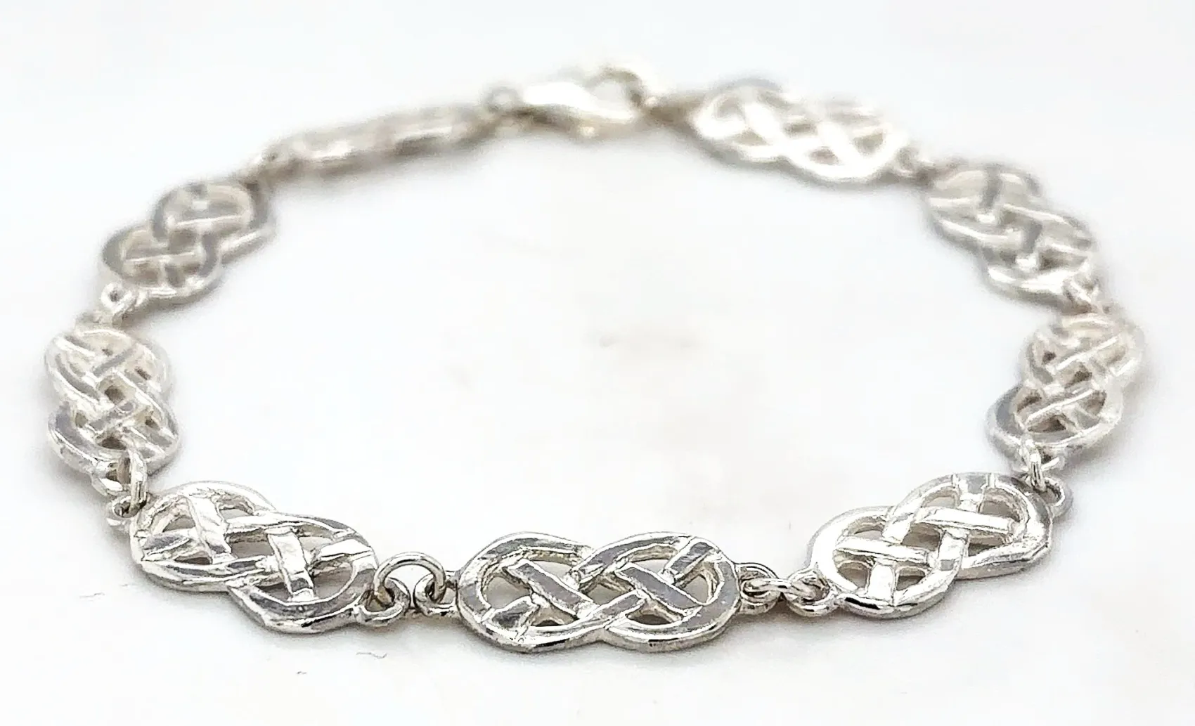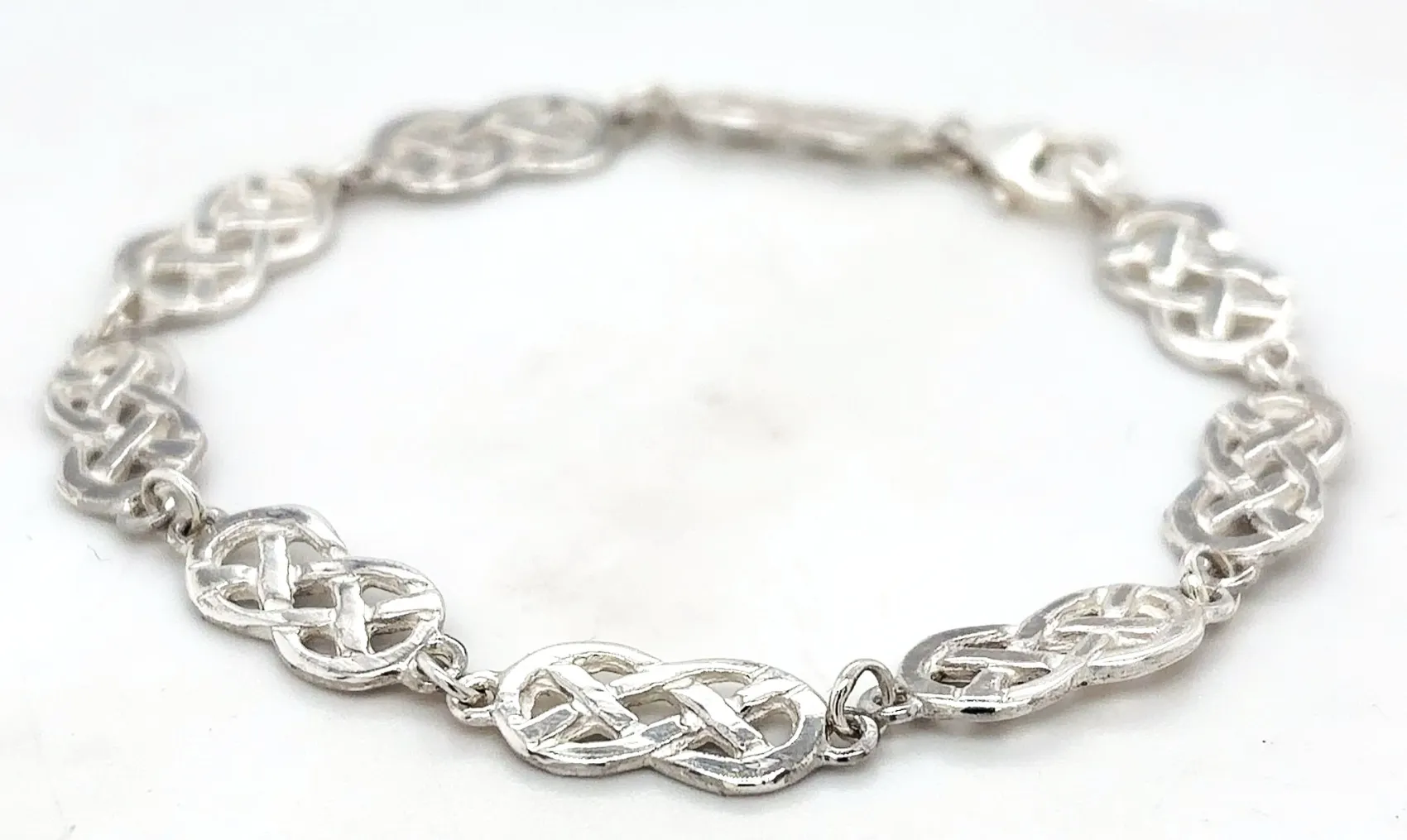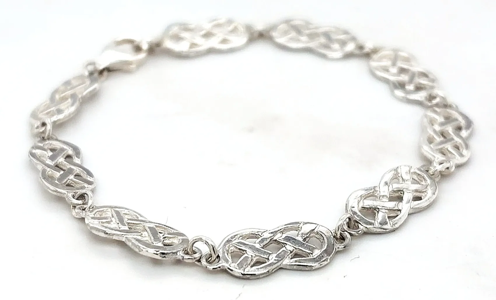 Embrace timeless craftsmanship with this solid sterling silver Celtic link bracelet, featuring a bold 7.4mm chain that exudes strength and elegance. Each intricately designed link reflects classic Celtic artistry, combining tradition with contemporary style. Crafted from high-quality 925 sterling silver, this bracelet is durable yet comfortable, with a total weight of 8.0 grams and a length of 7.25 inches, making it a perfect fit for most wrists. A versatile and stylish accessory, this Celtic link bracelet is ideal for everyday wear or as a meaningful gift celebrating heritage, milestones, or personal style