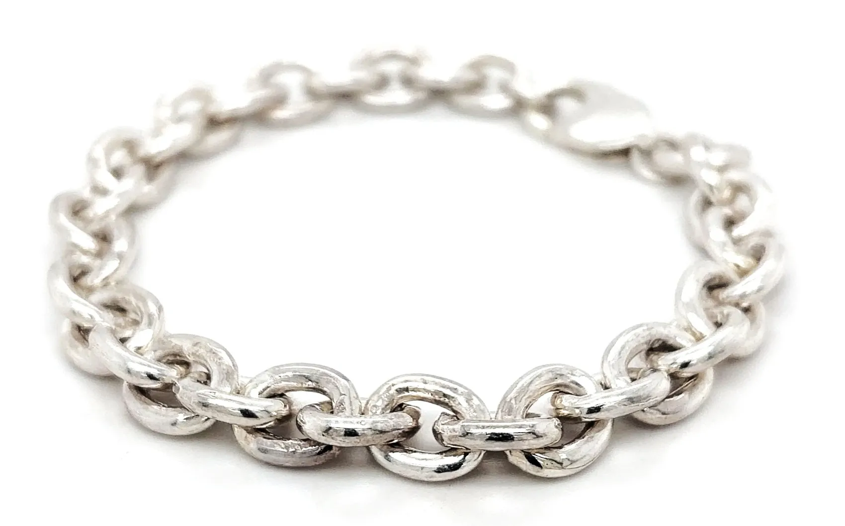 Classic and bold, this solid sterling silver belcher link bracelet features 9.3mm wide interlocking links, creating a timeless chain design that is both durable and stylish. Crafted from 925 sterling silver and weighing 39.7 grams, this bracelet combines a substantial, high-quality feel with everyday comfort. Its adjustable length of up to 9 inches ensures a perfect fit for most wrists. A versatile statement piece, this belcher link bracelet is ideal for everyday wear or special occasions and makes a thoughtful gift for birthdays, anniversaries, or heritage-inspired jewellery collections.