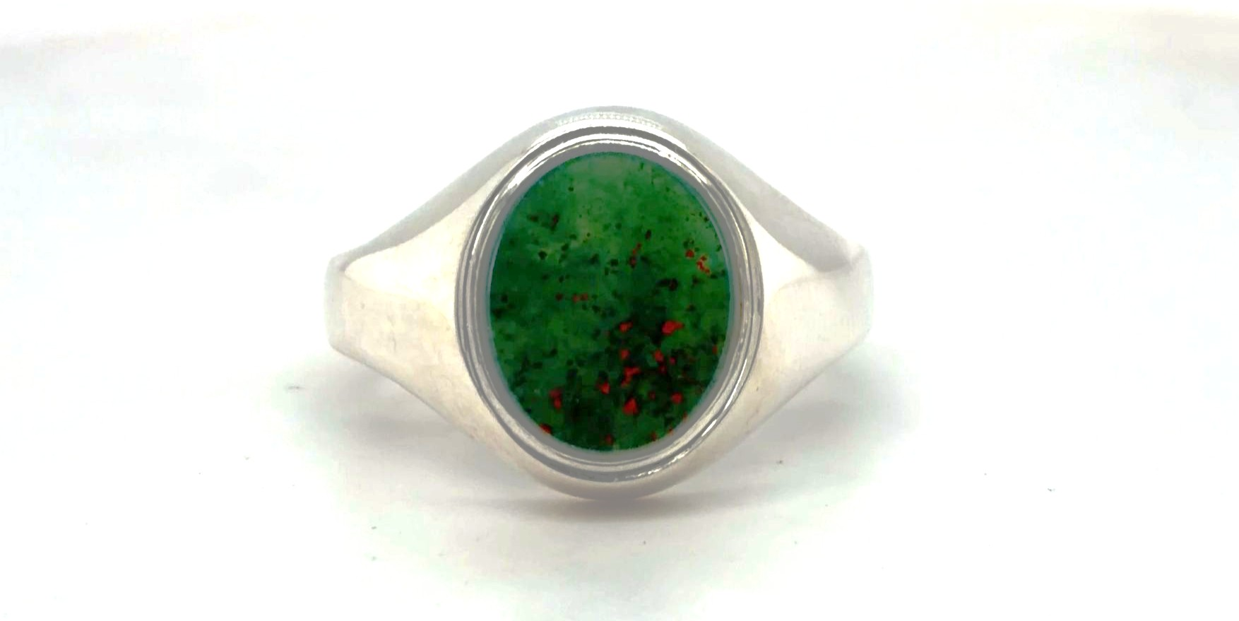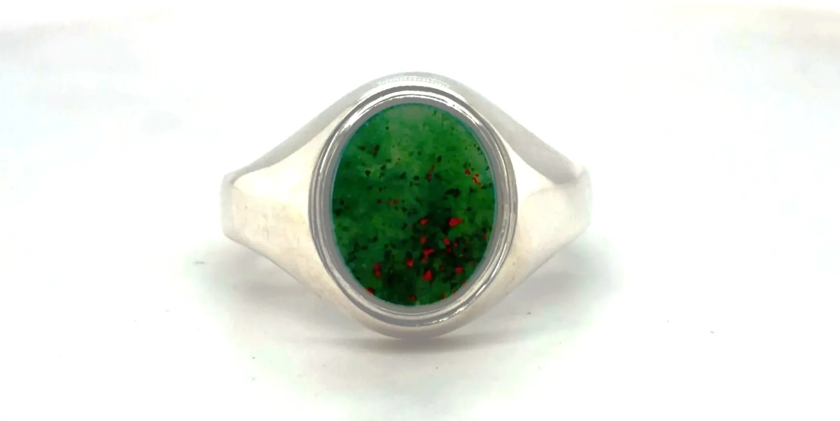 A striking statement piece, this Bloodstone signet ring combines the deep, natural hues of the Bloodstone gemstone with the timeless elegance of sterling silver. Set in a classic signet design, the polished Bloodstone adds character and a bold, masculine touch. Crafted from high-quality 925 sterling silver, the ring weighs 6.7 grams, offering a solid and comfortable fit. The Bloodstone features unique natural patterns, ensuring every ring is subtly individual. Perfect for everyday wear or as a meaningful gift, this signet ring is ideal for birthdays, anniversaries, or collectors of heritage-inspired jewellery.