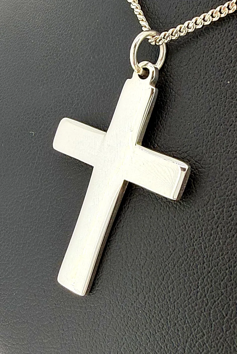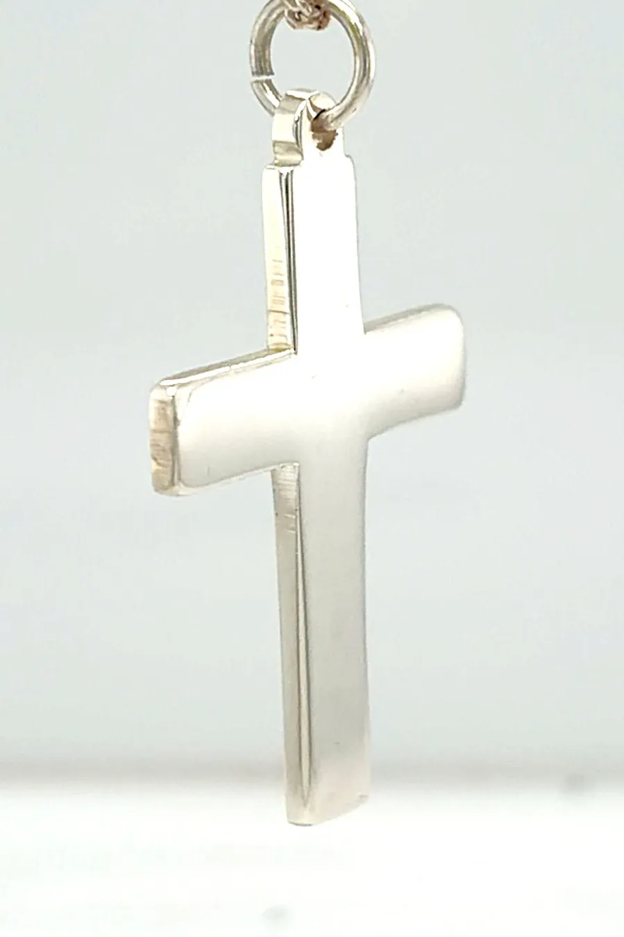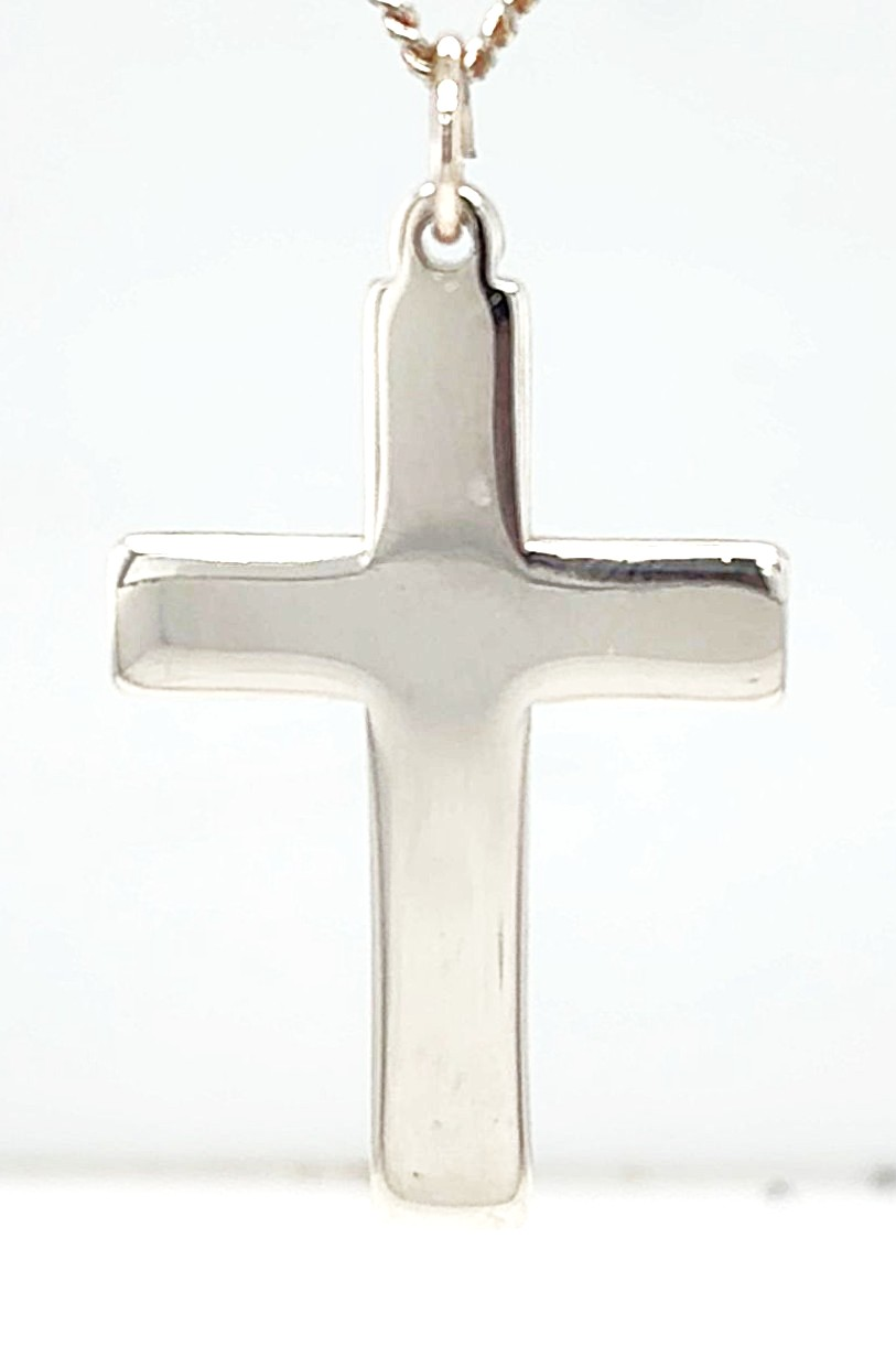 Timeless and understated, this sterling silver plain cross pendant features a clean, classic design with a smooth polished finish. Its simple silhouette makes it a versatile piece, suitable for everyday wear or special occasions. Crafted from high-quality 925 sterling silver, the pendant weighs 5.2 grams and measures 35mm x 25mm x 2.0mm, giving it a solid yet comfortable feel. The balanced proportions offer a refined look that complements a wide range of chain styles. A meaningful symbol of faith, this plain cross pendant makes a thoughtful gift for christenings, confirmations, birthdays, or as a timeless personal keepsake.