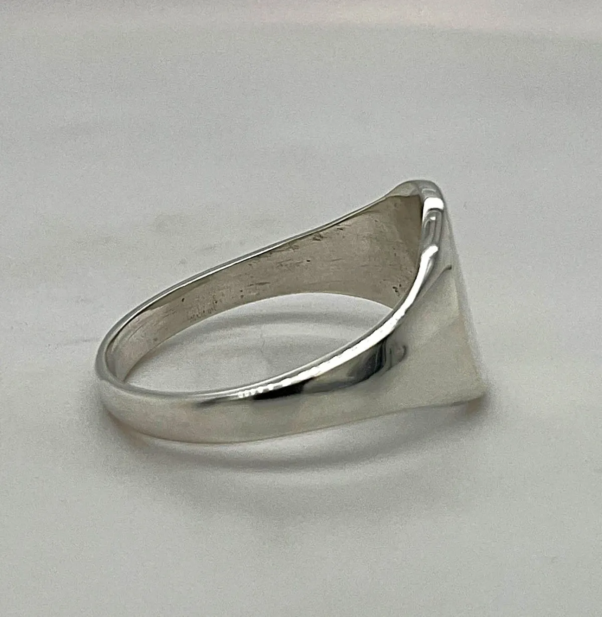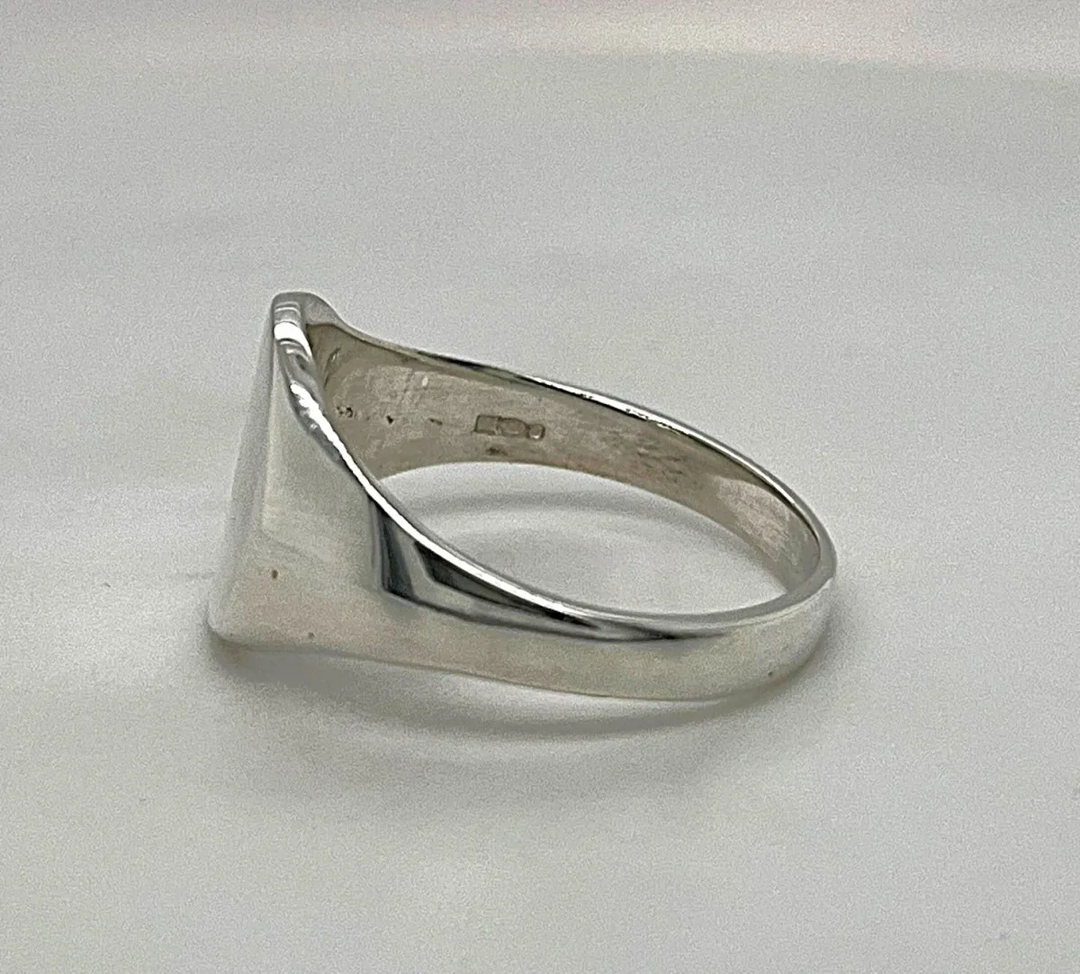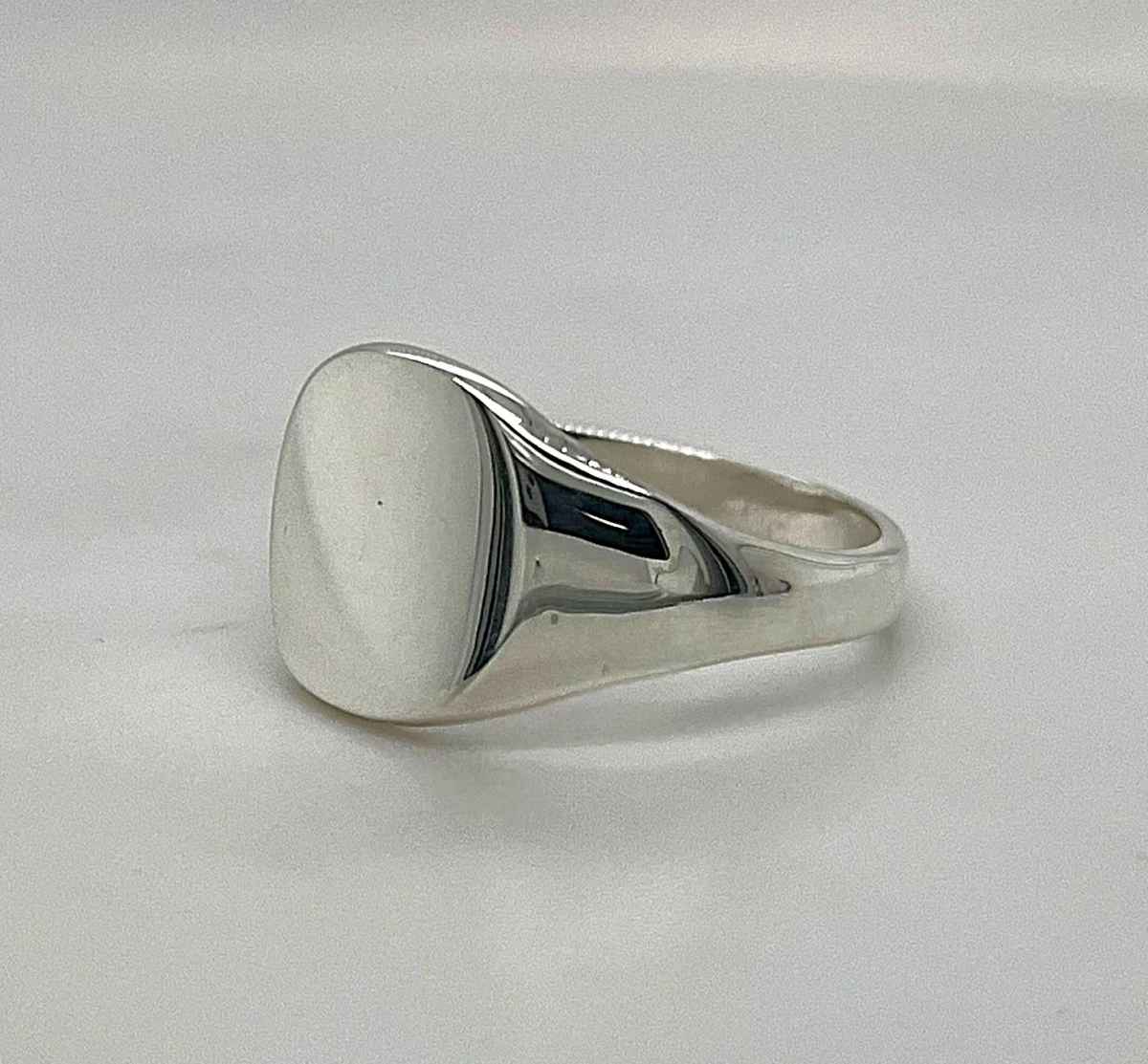 Classic, bold, and timeless, this sterling silver signet ring is a statement piece designed for enduring style. Weighing a comfortable 5.9 grams, it offers a solid yet wearable feel, with a sleek polished finish that exudes understated elegance. Traditionally worn as a symbol of individuality and heritage, this versatile ring can be left simple or engraved for a personal touch. Ideal for everyday wear, gifting, or as a signature accessory, it combines strength, sophistication, and classic design in one refined piece.
