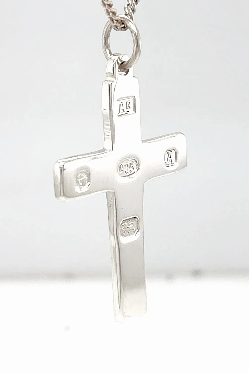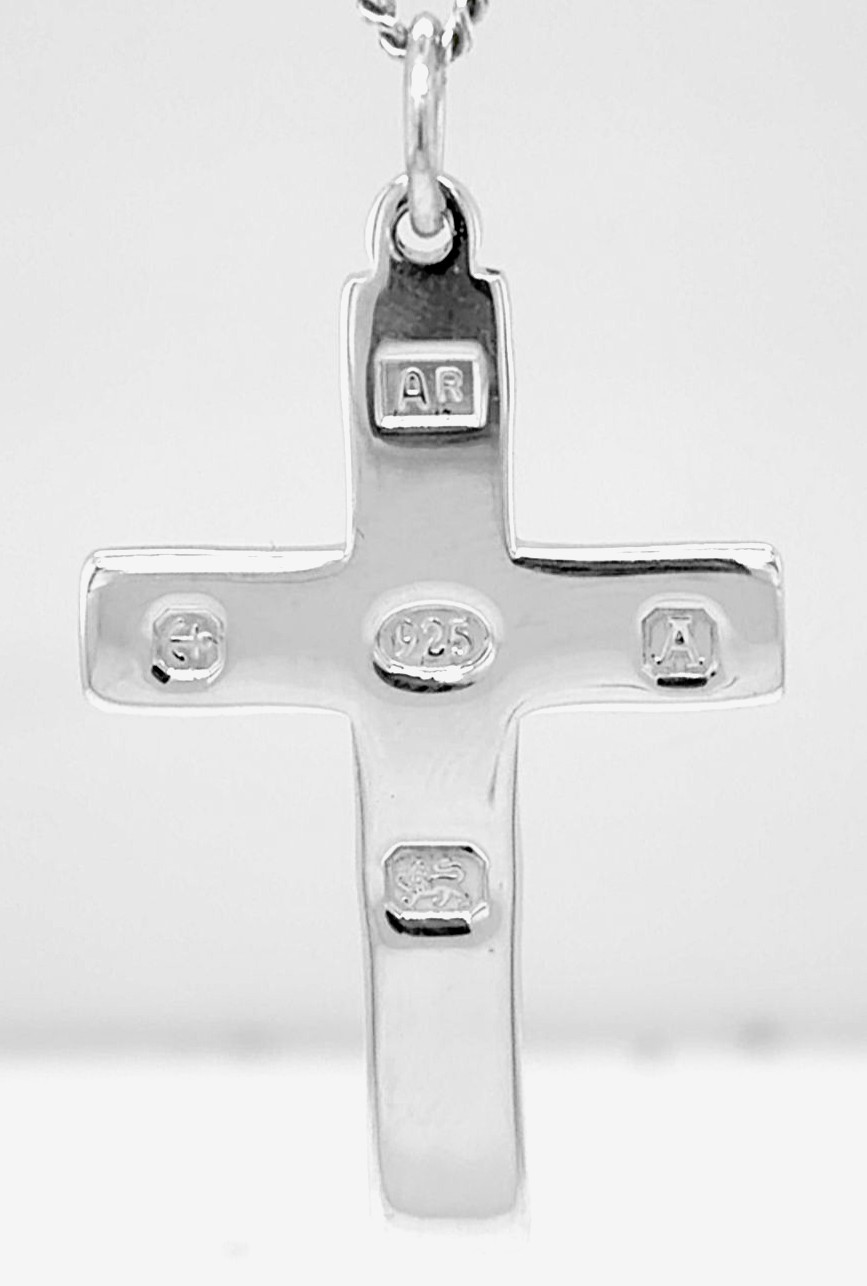 Elegant and symbolic, this sterling silver spread hallmark cross pendant features a classic design with subtly flared arms, creating a modern yet timeless appearance. Its polished finish highlights the intricate craftsmanship and enhances its refined look. Crafted from high-quality 925 sterling silver, the pendant weighs 5.0 grams and measures 36mm x 26mm x 1.9mm, offering a comfortable fit for daily wear. Its versatile design makes it perfect for layering with chains or wearing alone as a statement piece. A meaningful expression of faith, this spread hallmark cross pendant is an ideal gift for confirmations, christenings, birthdays, or as a personal keepsake.