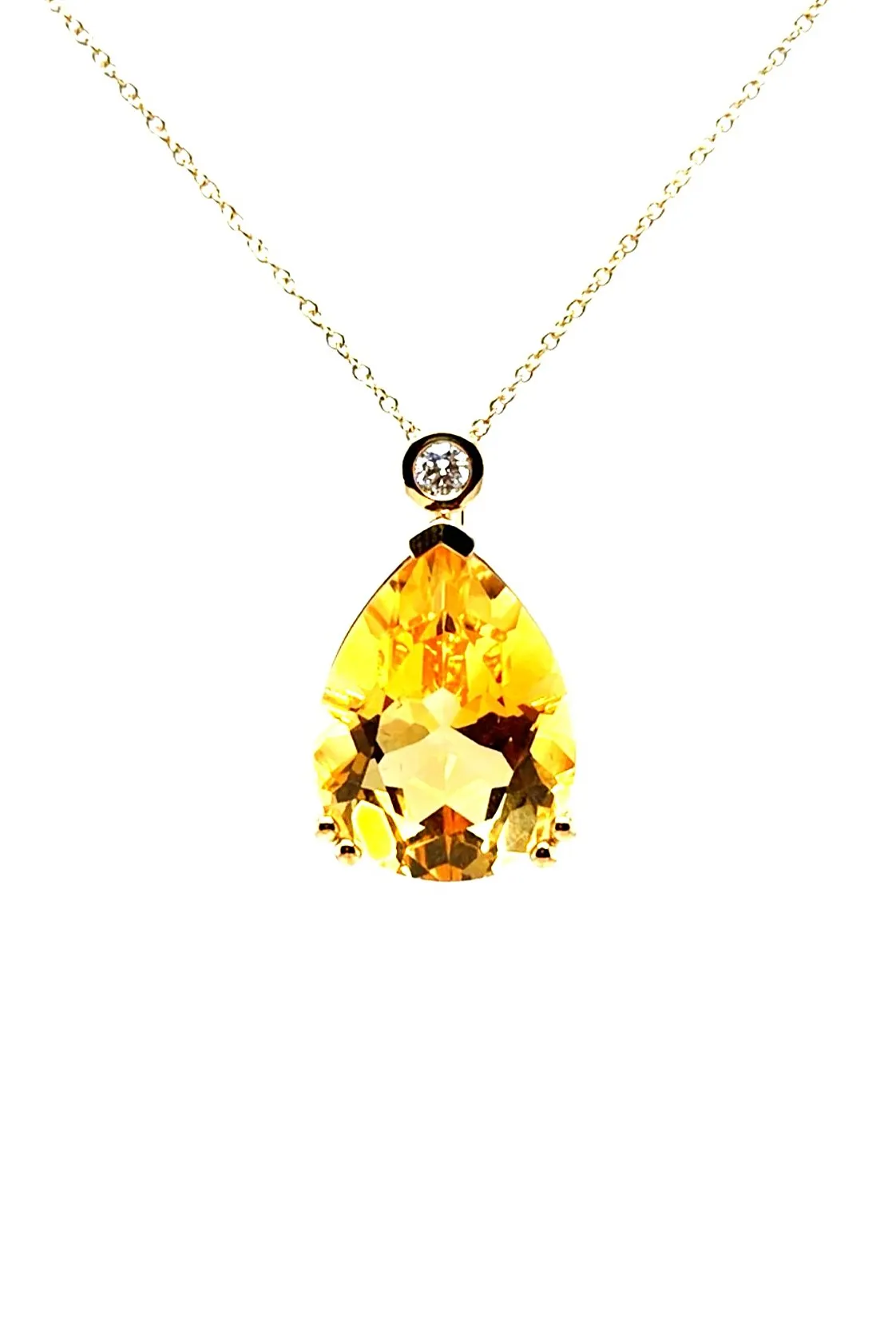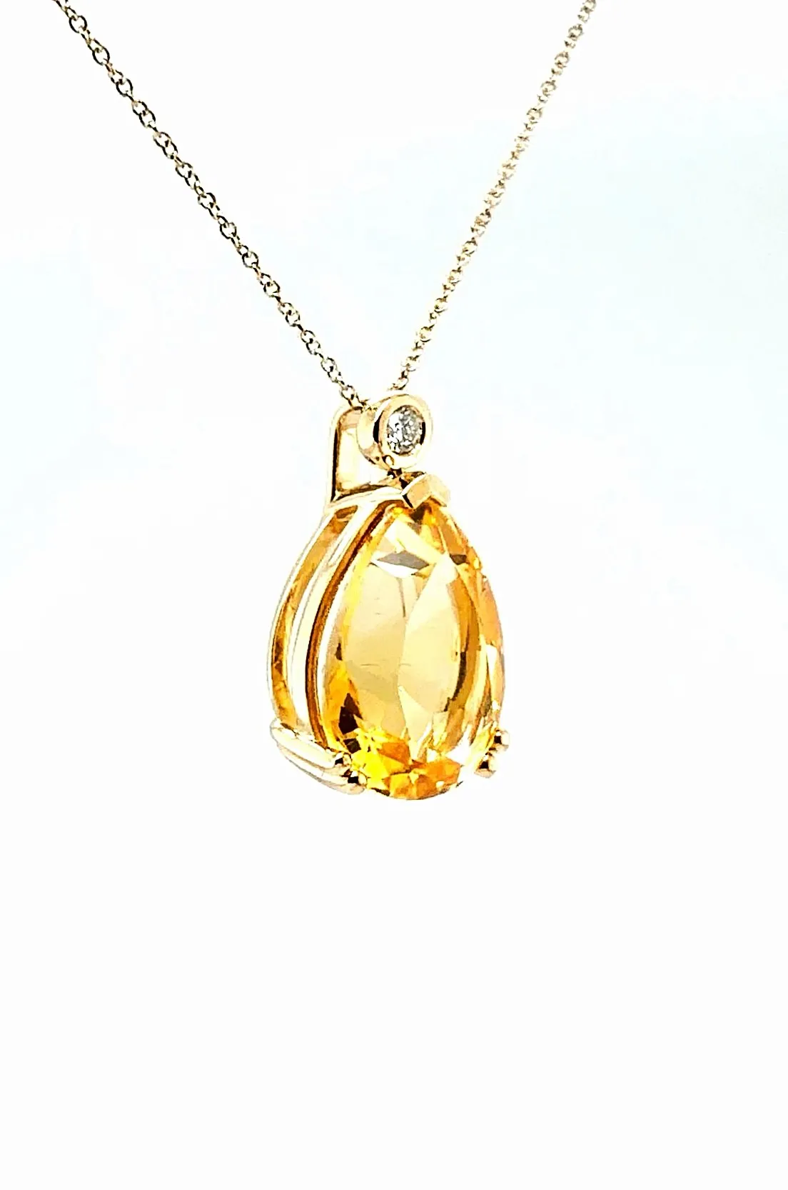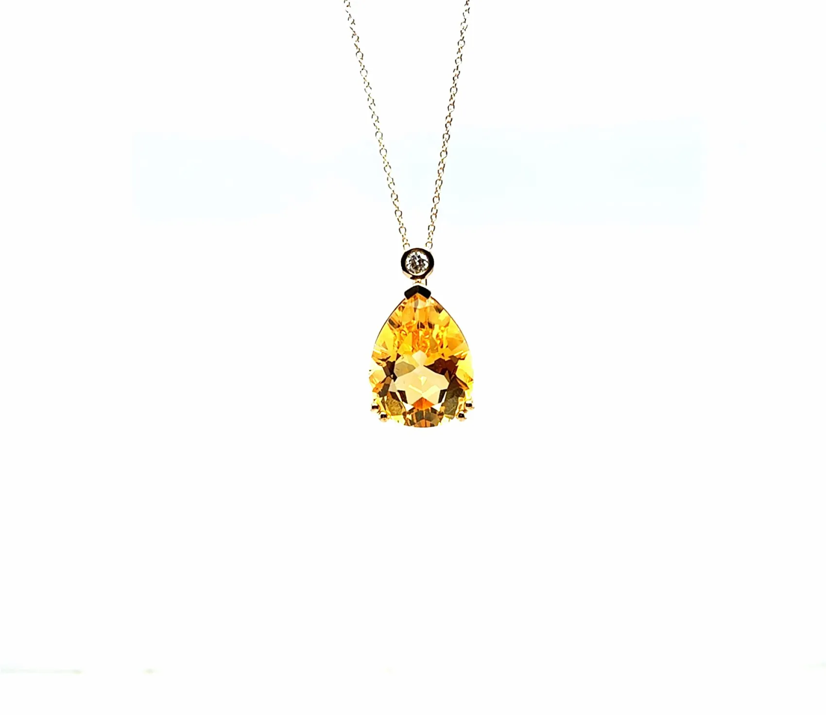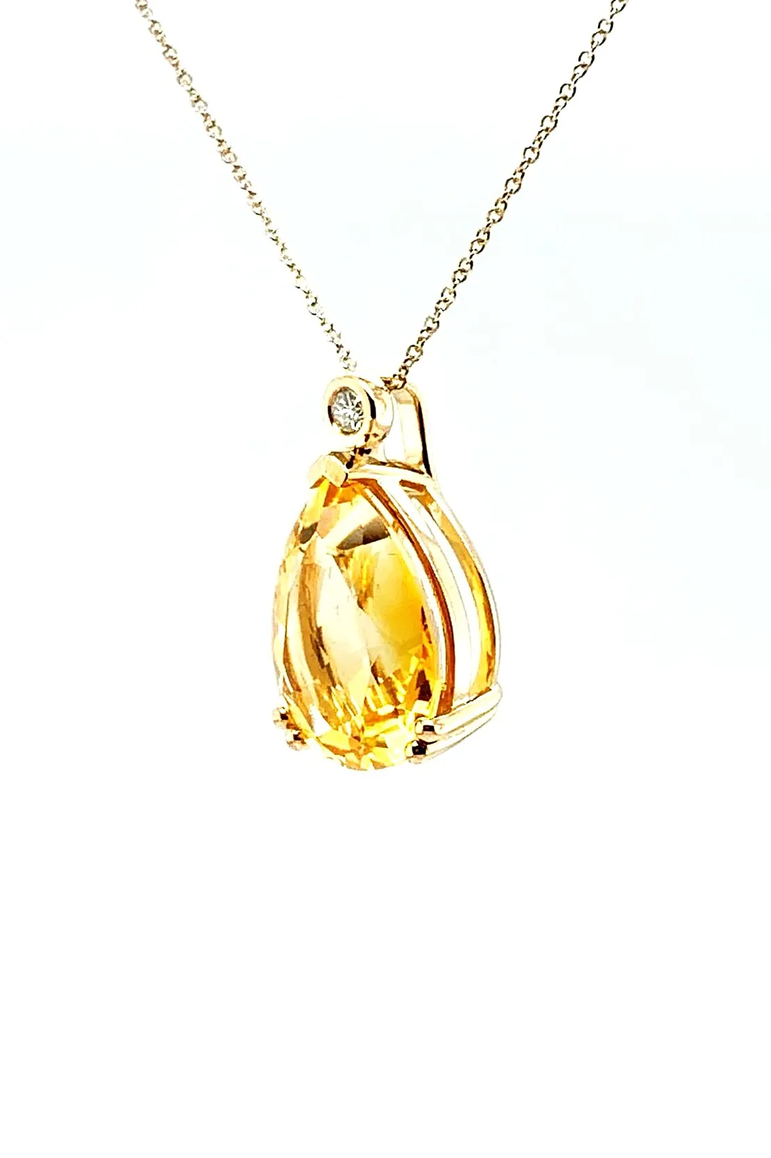 Make a bold statement with this dazzling pendant featuring a vibrant 9.50 carat citrine as its centrepiece. The golden-yellow hue of the citrine is beautifully enhanced by 0.08 carats of sparkling diamonds, adding a subtle touch of brilliance and elegance. Set in 9ct gold, the pendant has a polished finish that complements the warmth of the citrine. Suspended from a 16/18 inch adjustable chain, it offers versatile styling to suit any neckline or occasion. With a total weight of 5.43 grams, this pendant combines substantial presence with refined sophistication. Key Features