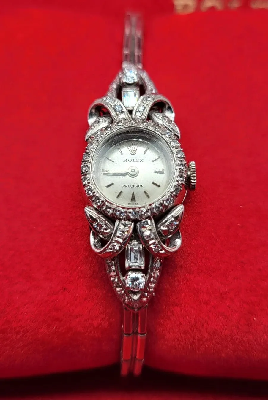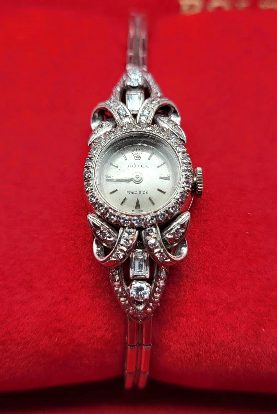 For sale is this absolutely stunning ANTIQUE 15mm Rolex Precision Cocktail Watch elegantly manufactured by Rolex in 18ct White Gold & finished with approx 0.90ct of exquisite Rolex Factory Set Diamonds.